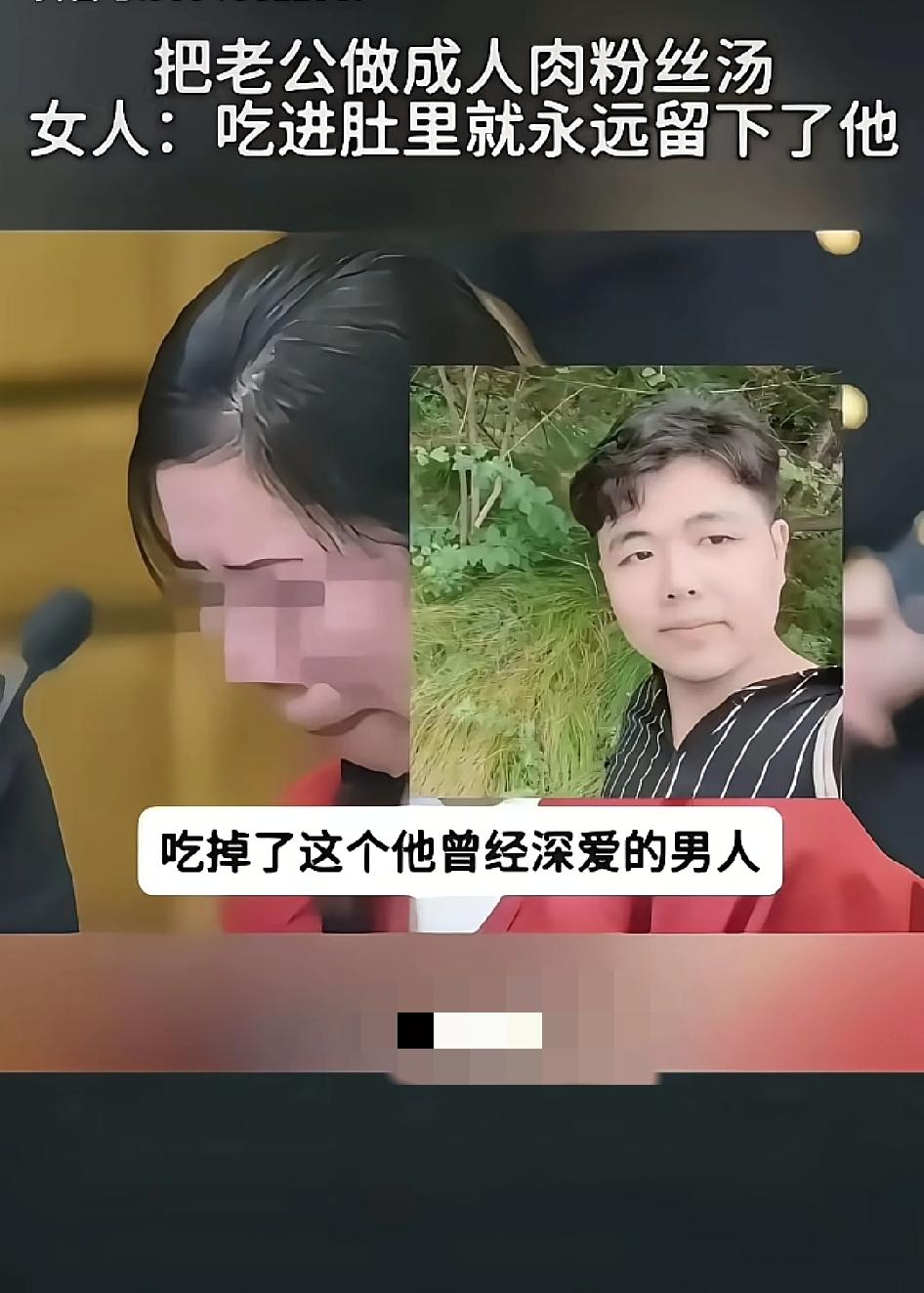 这是多么惊悚的故事: 把老公做成人肉粉丝汤,女人说把老公吃进肚子里,就永远留下了他!她活生生吃掉了那个曾经深爱的男人! 天呐再也不谈恋爱了,不如继续单着。这是一个悲伤的故事,但我还是忍不住想说一句,可是你也没有留住他啊,你又拉出来了。她爱他爱到了肚子里,当爱已消化,她任由他顺着下水道离开,不是她不爱了,是爱经不起考验。爱的时候在一块,不爱的时候这一块那一块