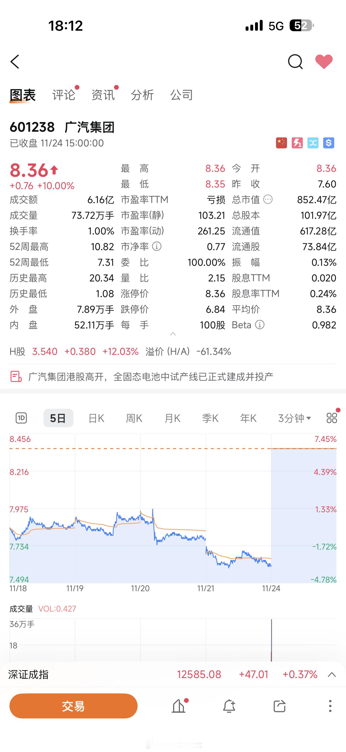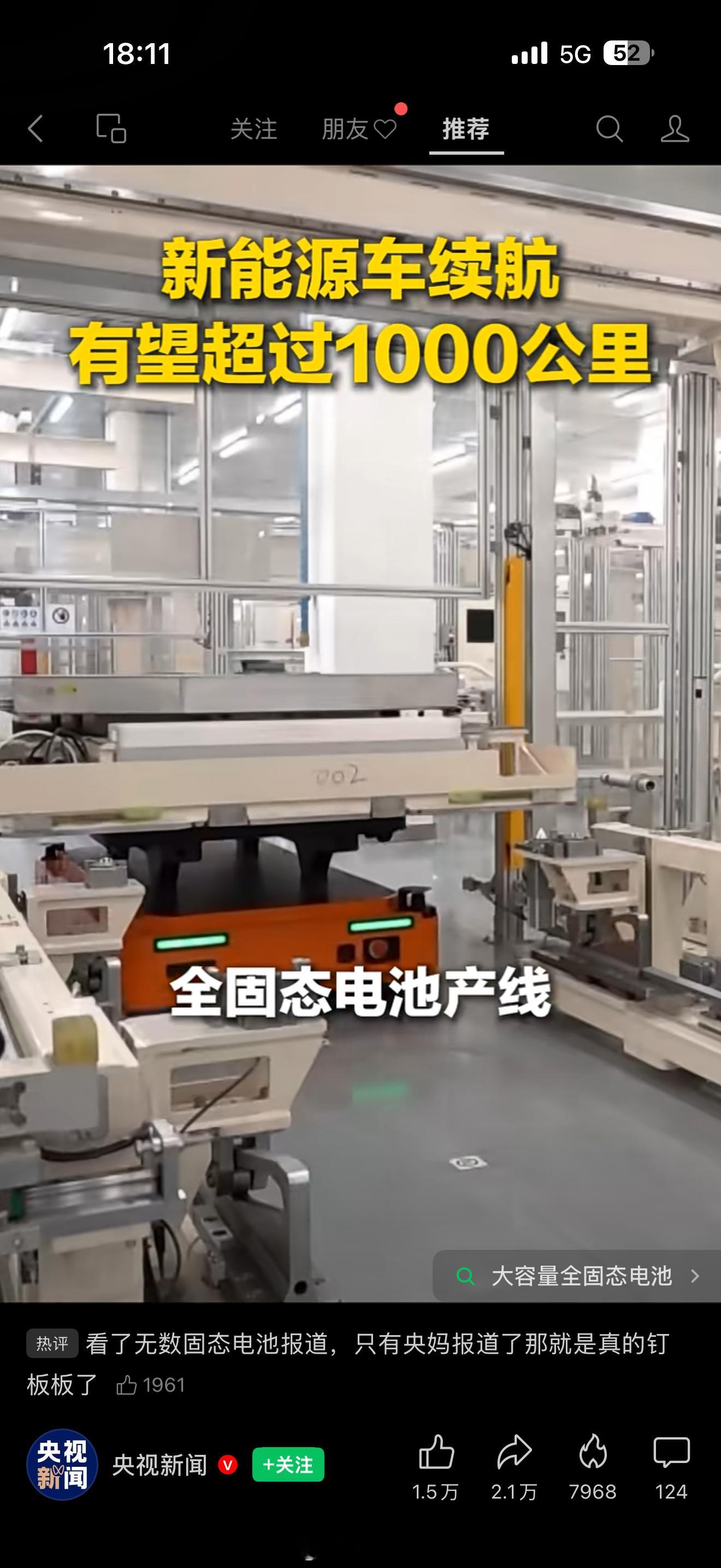广汽这波传播够硬,央视去采访了,固态电池产线实拍,目前小批量测试,计划26年小批量上车,27-30年逐步批量生产。今天整一个涨停。