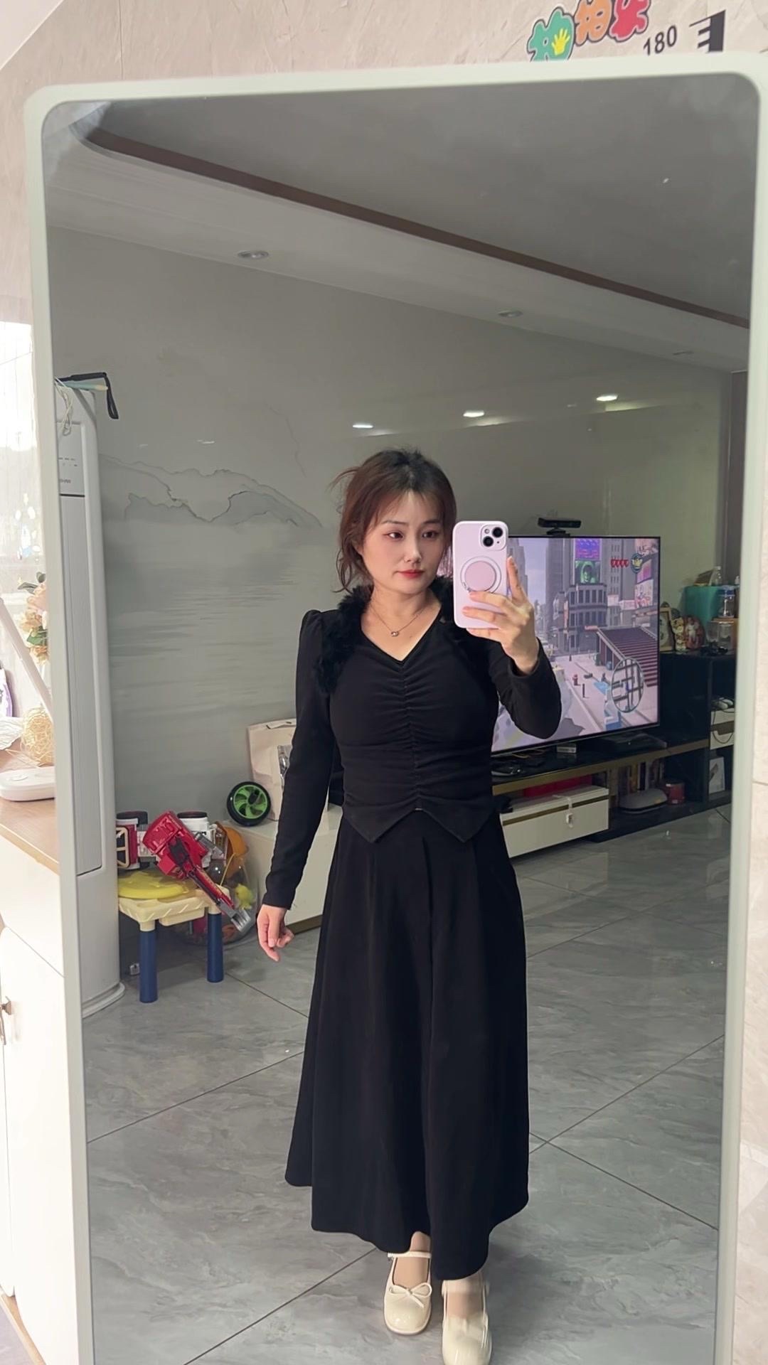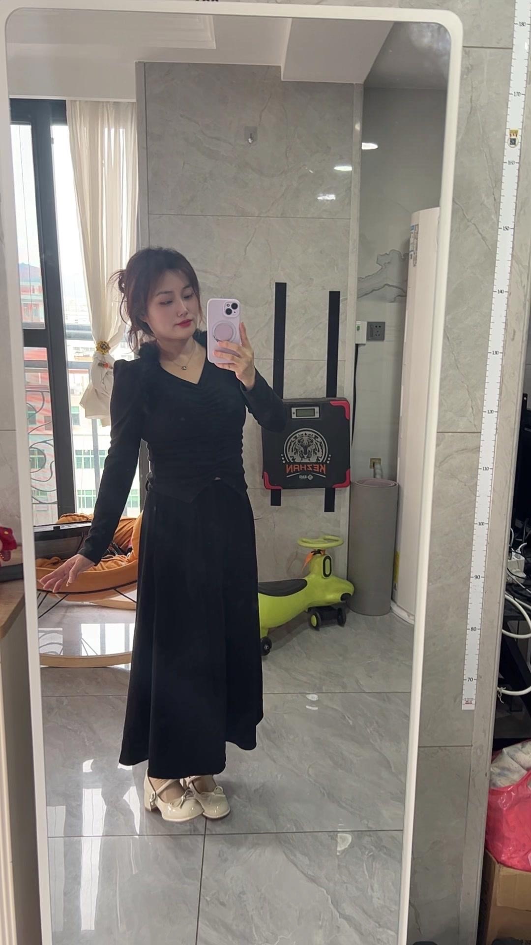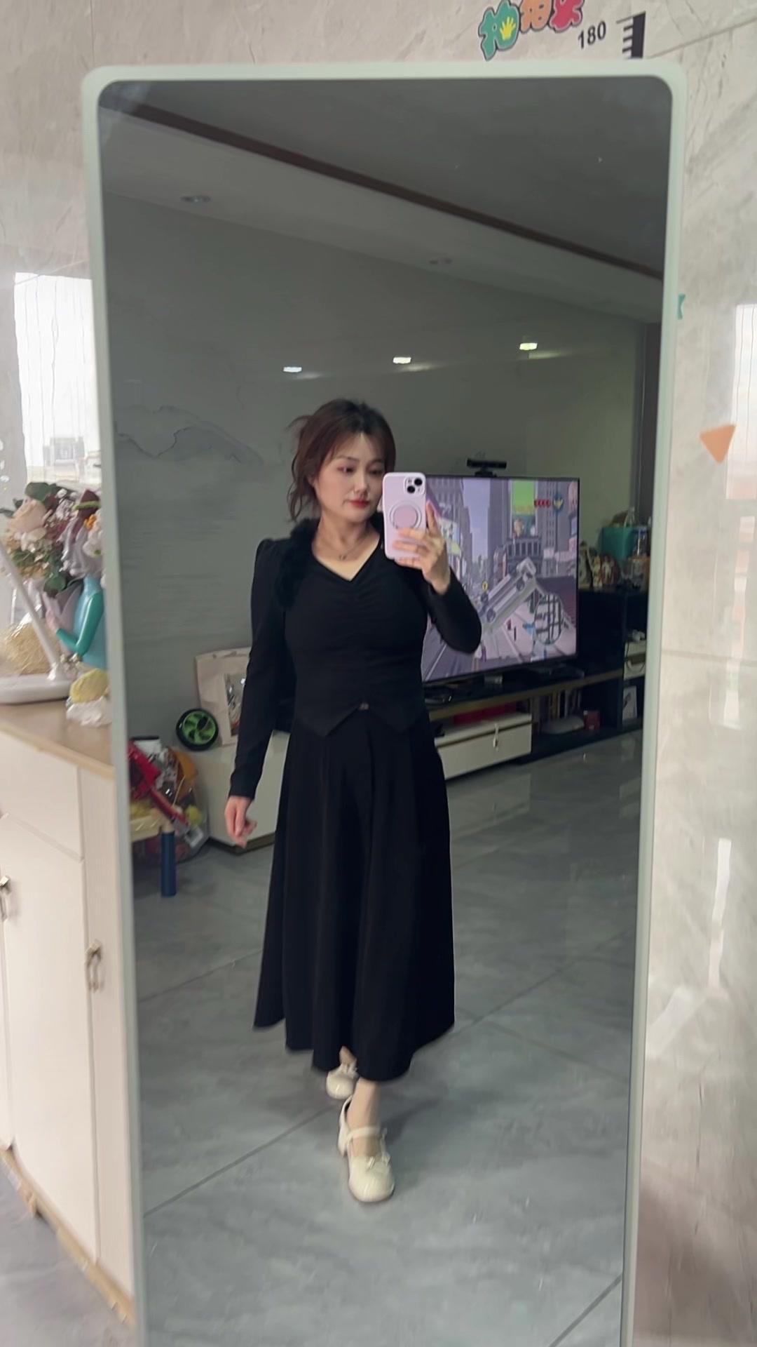 一直觉得黑色是万能色,随便穿都不出错。尤其是小个子,选对黑色单品真的能显高不少,不是那种死板的黑,而是带点光泽感的面料,穿上身特别有质感。 对镜拍真的是小个子福音,不用找角度也能拍出大长腿。选一件垂感好的黑色连衣裙,长度到膝盖上面一点,露出脚踝显腿长。外面再搭一件短款黑色西装,一秒get职场小个子的干练感。 衣柜里永远少一件黑色单品,黑色T恤搭配黑色直筒裤,简单又耐看。再踩一双小白鞋,休闲又百搭,日常通勤或者周末逛街都合适。黑色系穿搭真的是懒人必备,不用费心搭配也能轻松出门,而且高级感一点都不亚于其他颜色。 黑色系穿搭对镜拍小个子女生