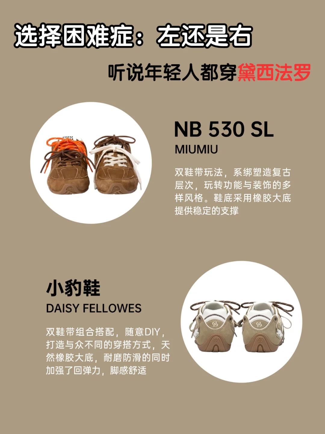 ① MIUMIU 530:以90年代经典跑鞋为蓝本,用多材质拼接营造奢华感,双鞋带设计+轻量化脚感,复古又实用。