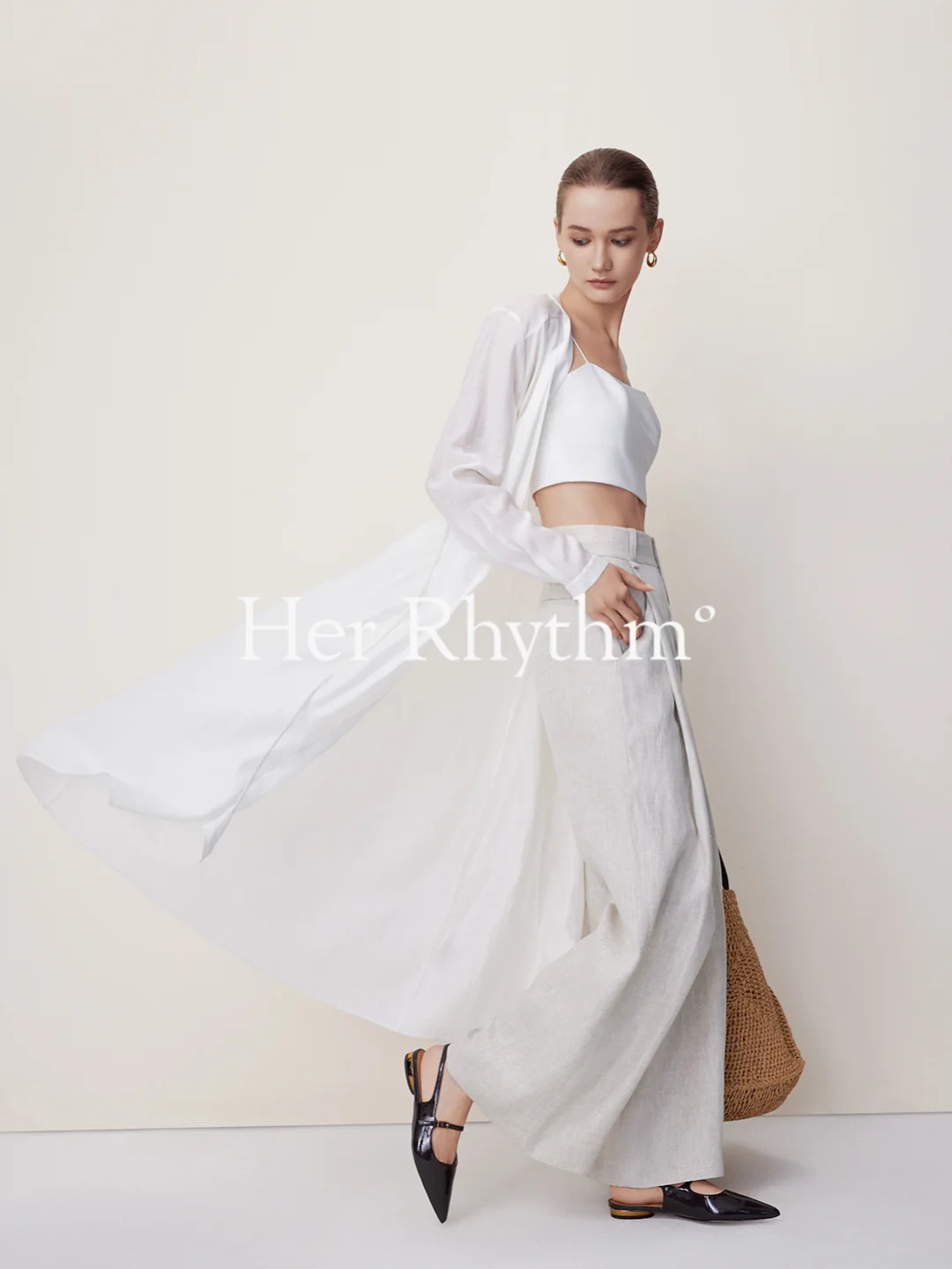 Her Rhythm为当代独立、自由的女性设计,把对本真之美的追求融于时装之中,注重于展现有温度的极简主义。利落摩登的解构姿态,简约高级的美学工艺,为时装注入灵魂,当衣装归零,自然成为自己。