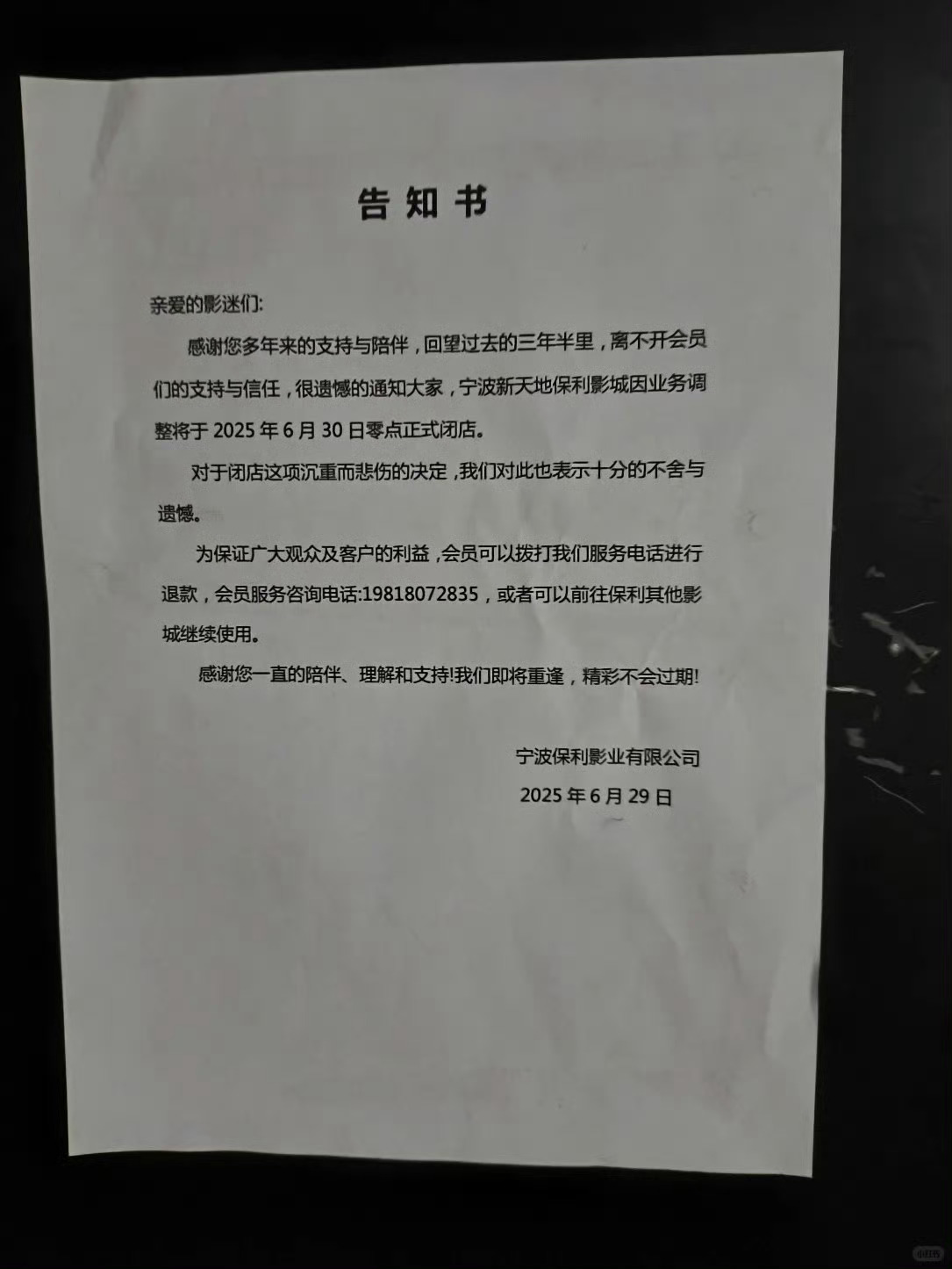 ?半年倒闭38家,空场率长期维持在30%以上,宁波的情况也并不好!宁波网友“未来阳阳”发帖:宁波电影院倒闭好几家了。我看了一下,网友所提到的万象影业仍在着正常营业中,售票情况也是一切正常的。不过网友所提到的天水广场德信影城确实已于今年3月关门了。无独有偶,宁波保利城西新天地店电影院也已于今年6月宣布闭店。影视寒冬,很多人是一直在关注,但真的没有好看的。只能说,现在的观众们已经不再愿意为“烂片”掏钱买单,而在低迷的电影市场前,一年两部叫好又叫座的影片又怎么够呢?来源:东方热线