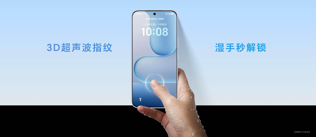 7.75mm的厚度,行业最窄1.05mm黑边,同时支持IP68&IP69&IP69K行业至高防水等级,还有超声波指纹,湿手也能解锁。