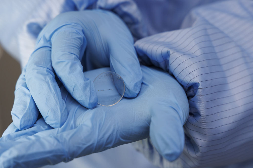 2025年4月8日,在中国科学院地质与地球物理研究所,科研人员展示即将进行实验检测的月球样品。新华社记者金立旺摄