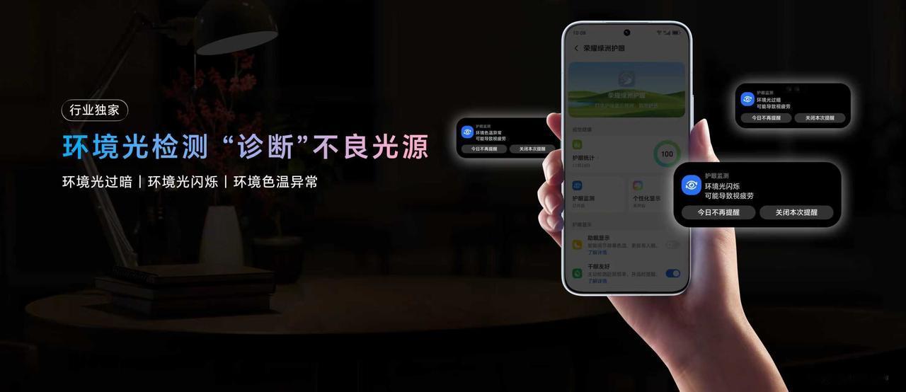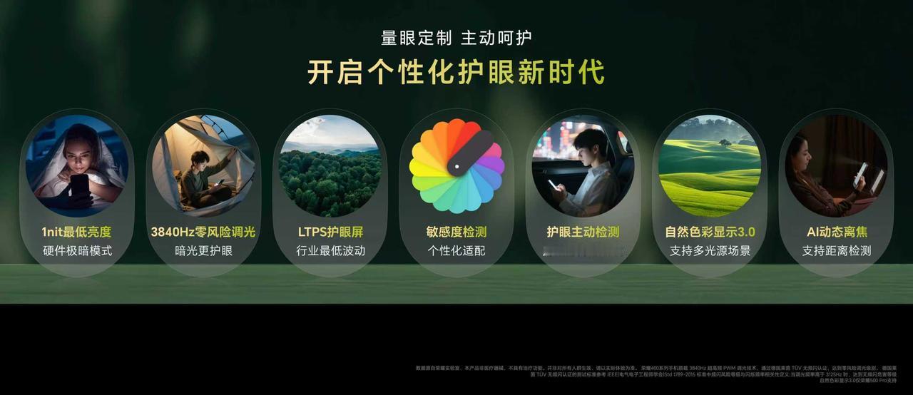 荣耀500全系搭载绿洲护眼屏,支持包括照明闪烁检测、AI视觉健康管理、AI动态离焦等九大荣耀绿洲护眼特性,最强护眼看荣耀! 荣耀500 Pro结合自研射频增强芯片HONOR C1+与骁龙旗舰芯片能力,针对游戏、演唱会、高铁、地铁四大高发场景进行专项优化,保障网络始终稳定在线。档位首次搭载AI键,支持自定义快捷操作。更联合“奶龙”IP深度定制主题、铃声与YOYO形象,开启萌趣交互新体验。