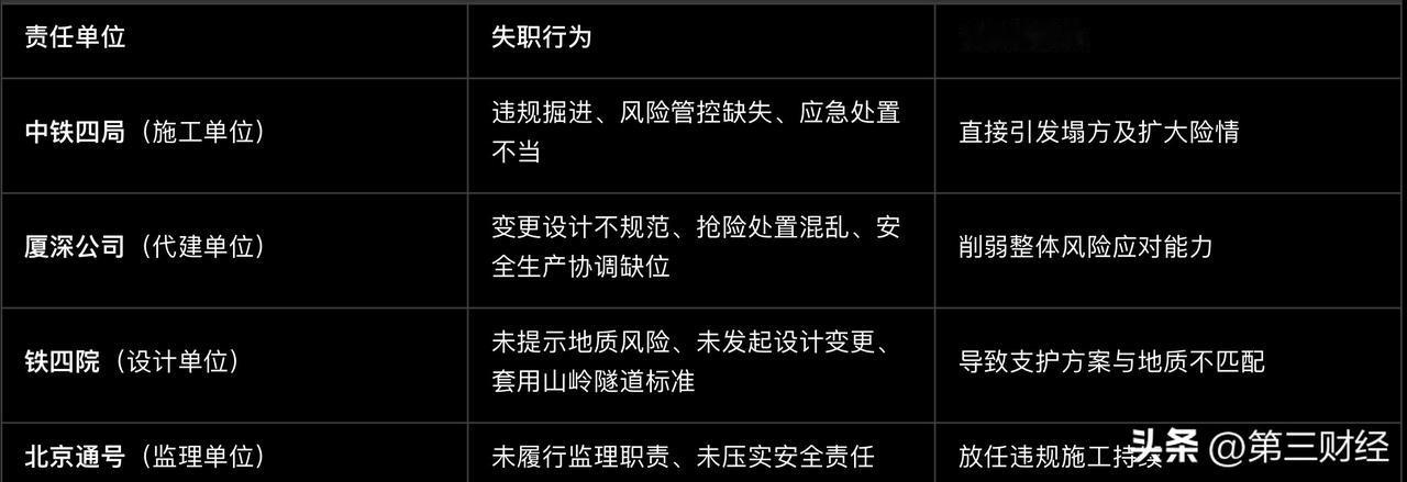 致13人死亡 深江铁路“12·4”坍塌事故调查报告公布 当警钟撞碎在“进度”的高墙上 2024年12月4日深夜,深圳宝安。深江铁路5标段的施工现场,一声闷响后,大地裂开,13名工人连同作业面一同坠入深渊。7261万元的经济损失数字冰冷,而13个家庭的破碎,是任何赔偿都无法弥合的创口。 这起事故的调查报告,像一份冰冷的“病理解剖书”,清晰地勾勒出一条由技术失误、管理失序、责任失守交织而成的致命链条。 事故的直接诱因,是围岩等级从Ⅲ级突变为Ⅳ级。这本应是施工的“红色警报”,意味着前方不再是坚硬稳定的岩石,而是随时可能垮塌的“豆腐渣”。然而,施工单位中铁四局的选择是——继续掘进。 为什么?因为停下来,意味着工期延误,意味着成本增加。在“进度至上”的潜规则下,安全风险被悄然“打折”。报告中“未停止掘进”、“未变更支护方案”的表述,背后是血淋淋的教训:当技术规范让位于“经验主义”和“进度压力”,塌方只是时间问题。 如果说施工单位的冒险是“导火索”,那么设计、监理、代建单位的集体失语,则是为这场灾难铺就的“火药桶”。 设计单位铁四院。地质变了,设计却“纹丝不动”。没有及时发起设计变更,没有针对性地强化支护,仿佛施工图纸是一成不变的“圣旨”。城市地下施工与山岭隧道的差异被忽视,标准的“错配”直接导致防护措施“失灵”。 监理单位北京通号。监理的职责是“盯”安全,而非“陪”施工。面对围岩突变和违规掘进,监理方未能果断叫停,未能有效制衡,形同“摆设”。监理责任的“空转”,让最后一道防线形同虚设。 代建单位厦深公司。作为项目的“大管家”,在协调各方、统筹安全上严重缺位。变更设计不规范,抢险处置混乱,暴露出管理能力的严重不足。 这四方,本应是相互制衡、共同守护安全的“铁三角”(或“铁四角”),最终却成了“多米诺骨牌”,一倒俱倒。 首次塌方后,本应是亡羊补牢的机会。但参建各方未能采取有效的工程措施,险情被一次次“轻描淡写”地放过。当掌子面上方多次塌方,地面陷落已成定局时,更致命的一击来了——应急处置的混乱。 13名地面作业人员在未明确险情、未有效疏散的情况下,被置于即将塌陷的“火山口”上。应急预案的缺失、现场指挥的混乱,让本可避免的伤亡成为现实。这不仅是技术的失败,更是对生命最基本的漠视。 事故调查组的六项整改建议,条条切中要害:风险源头防控、标准体系升级、应急能力再造、监管责任压实……这些建议,几乎每一条都曾在过往的事故中被反复提及。 根源在于,在一些地方和企业,安全依然只是“说起来重要、做起来次要、忙起来不要”的“软指标”。当“进度”与“安全”冲突时,安全往往成为被牺牲的“代价”。监管的“宽松软”、处罚的“挠痒痒”,让违法成本远低于冒险收益。 深江铁路的这起事故,再次以生命的代价警示:基建的“狂飙”,不能以安全的“失速”为代价。任何工程的速度,都不应超越对生命的敬畏。任何技术的标准,都必须以安全为不可动摇的基石。 否则,今天的“进度”,终将成为明天无法承受的“事故”。而那些冰冷的经济损失数字背后,是永远无法归家的鲜活生命。这声警钟,必须撞碎在“进度”的高墙上,才能真正唤醒沉睡的责任心。 深圳施工坍塌 深江铁路坍塌