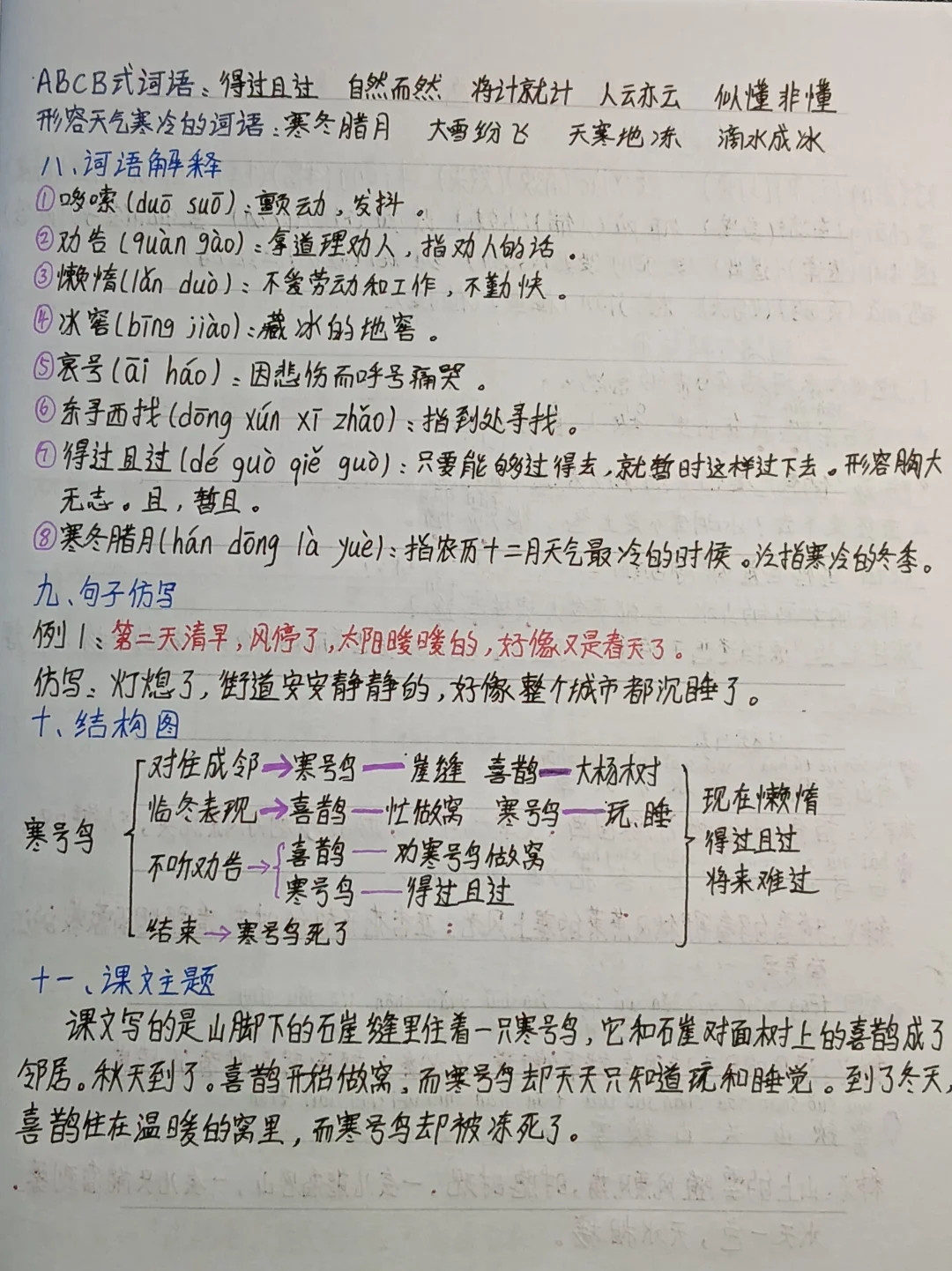 二上语文《寒号鸟》知识点总结