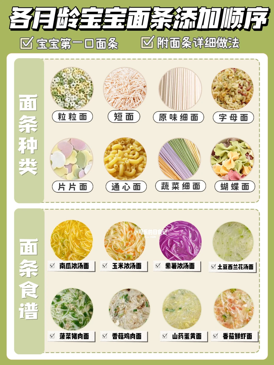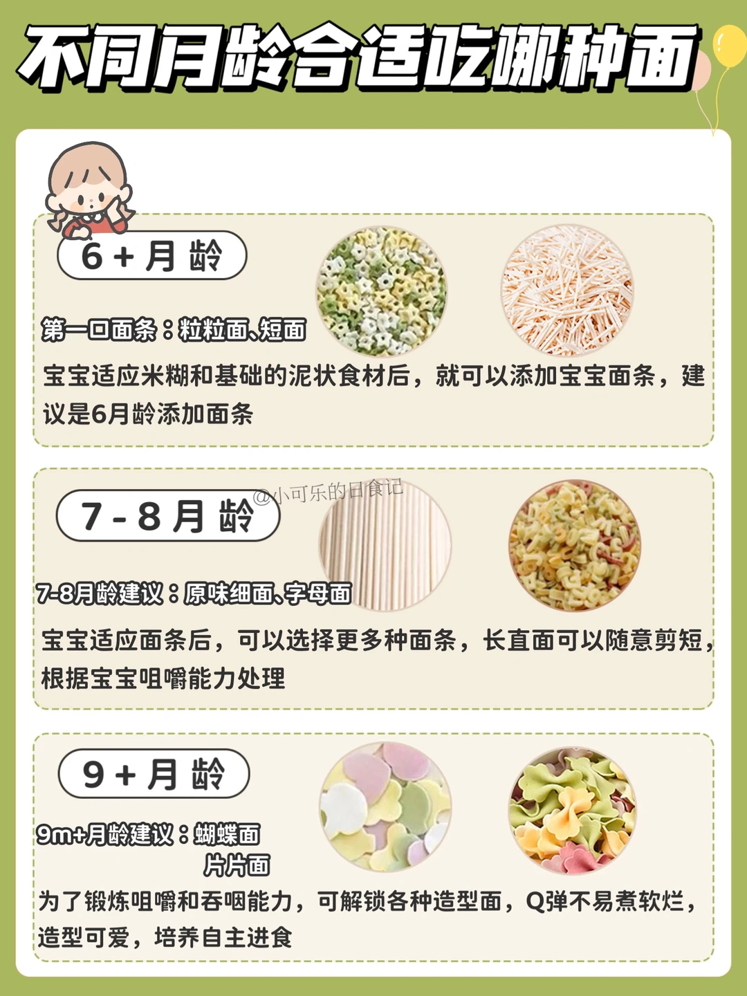 面条也要排敏,先少量尝试三天,在中午添加,观察宝宝的情况,要根据宝宝的月龄来选不同的造型,帮助宝宝慢慢过渡,锻炼宝宝咀嚼吞咽的能力。