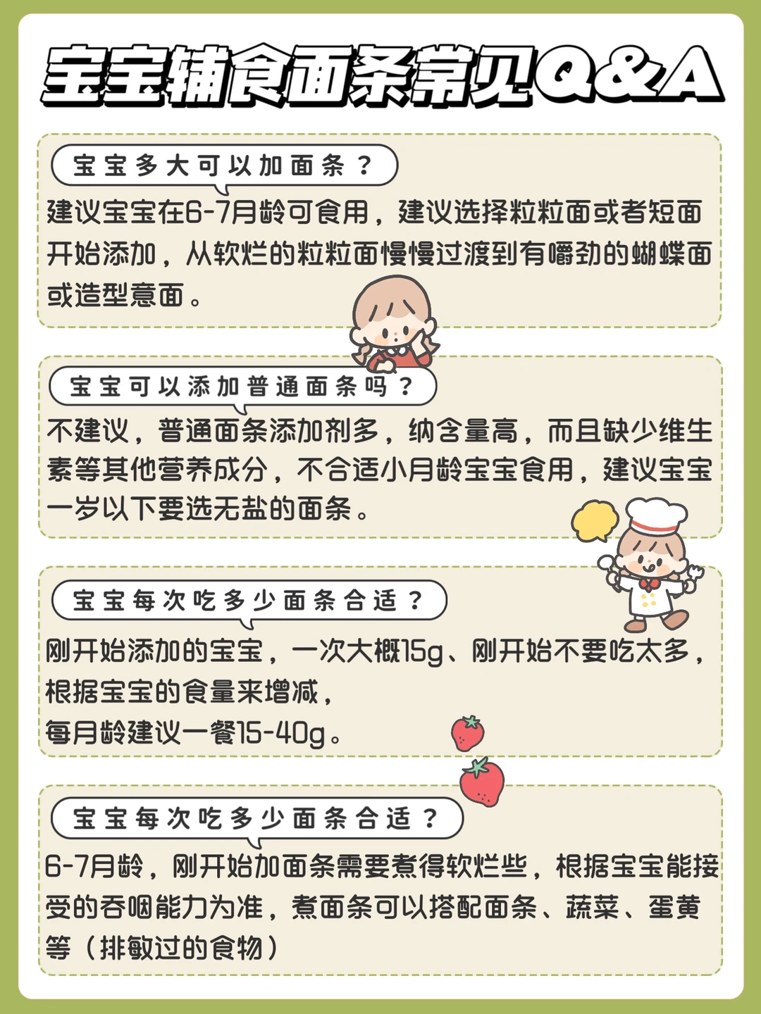 很多妈妈问宝宝什么时候可以添加面条⁉一般宝宝添加辅食逐渐适应米粉和各种蔬菜泥后,就可以由米粉慢慢过渡到粥面了,可以帮助宝宝锻炼咀嚼能力。因为不同的宝宝添加辅食时间不同,要根据自家宝宝的情况来选。