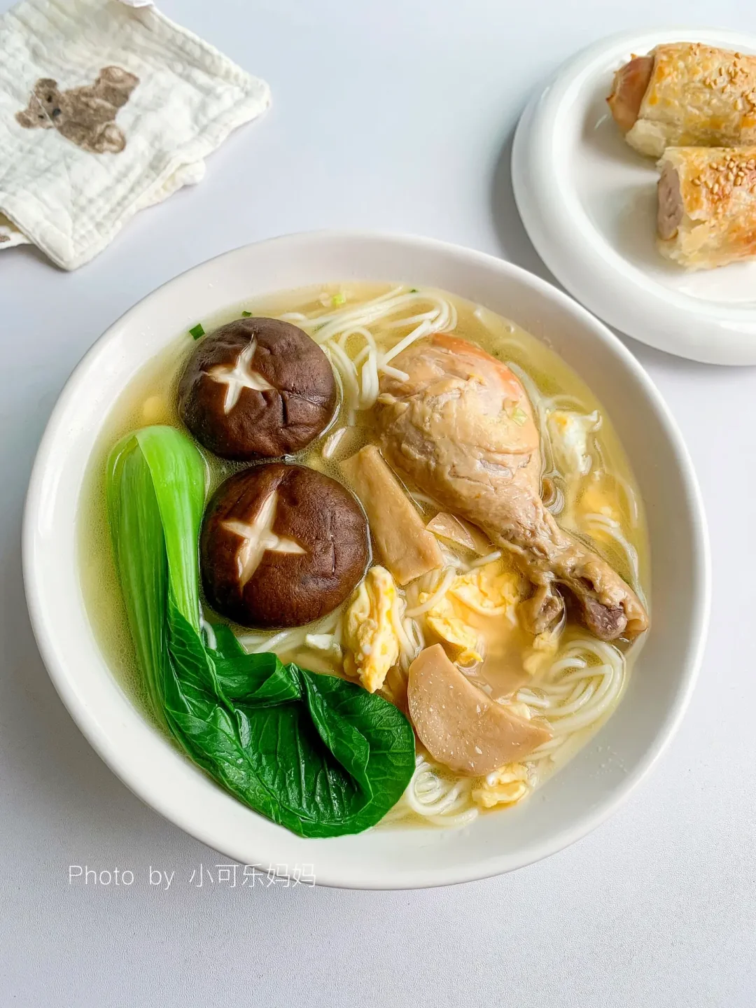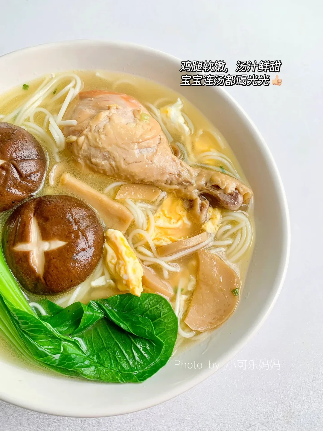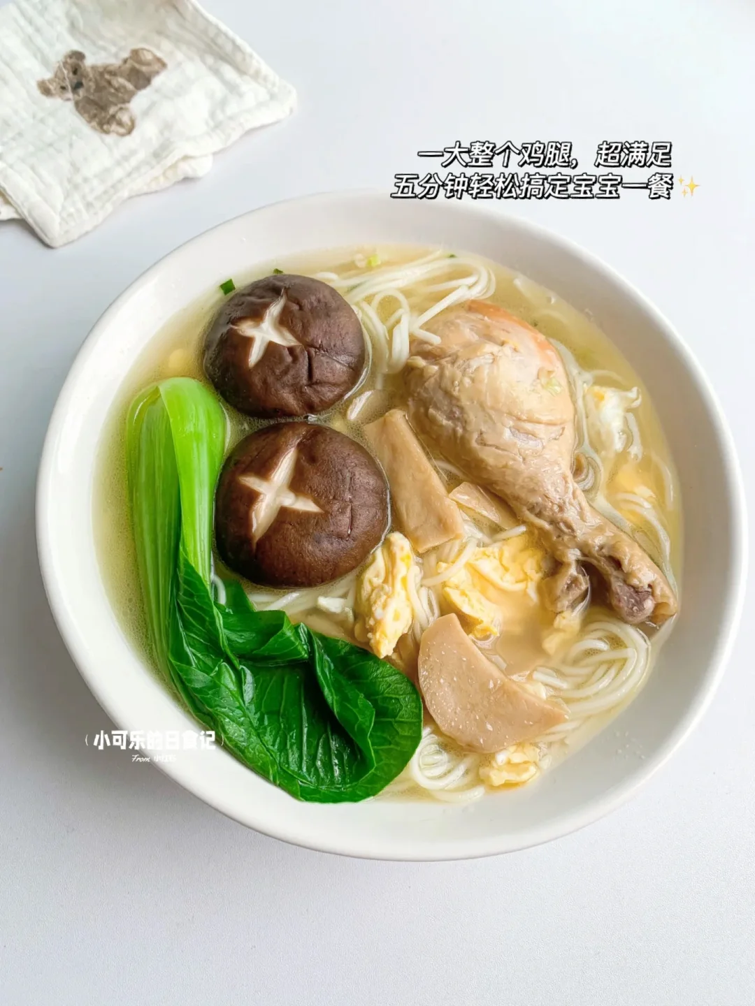 今天给宝宝安排了超好吃的鸡腿汤面,做法简单,5分钟搞定,是真的有大鸡腿的哦,汤汁也鲜甜。再搭配芝士猪肉肠,营养满满,轻松搞定宝宝一餐[赞R][赞R]