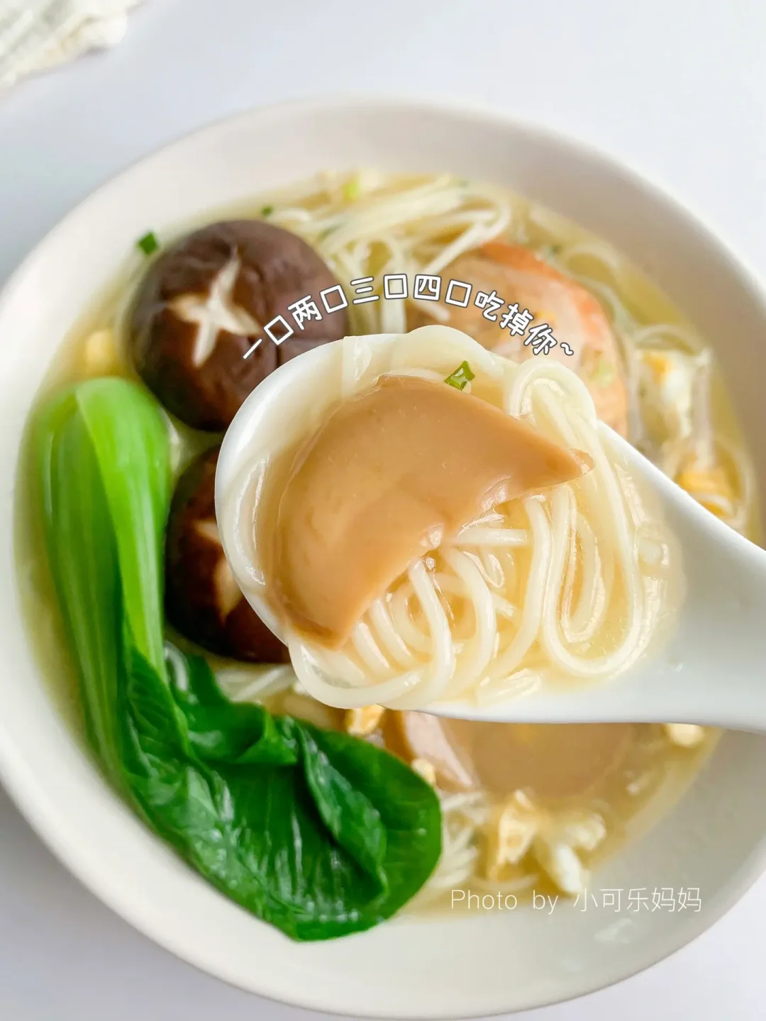 2⃣️锅里加入水煮开,放入面条,放入青菜和香菇煮熟,捞出放入煮好的汤里即可.