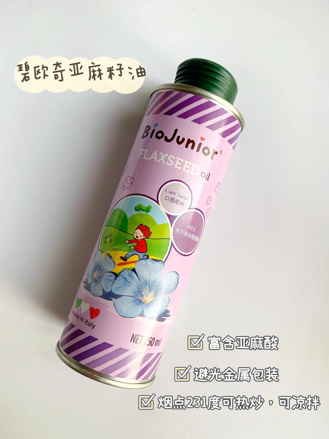 我家一直用的是这款碧欧奇亚麻籽油,富含亚麻酸,油脂纯净没有杂质,低温冷榨工艺锁住天然营养,没有苦味,烟点231度,凉拌或热炒都合适,这款亚麻籽油采用的是金属瓶装,能够有效避光。