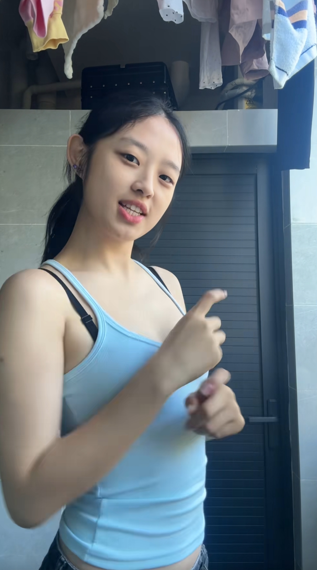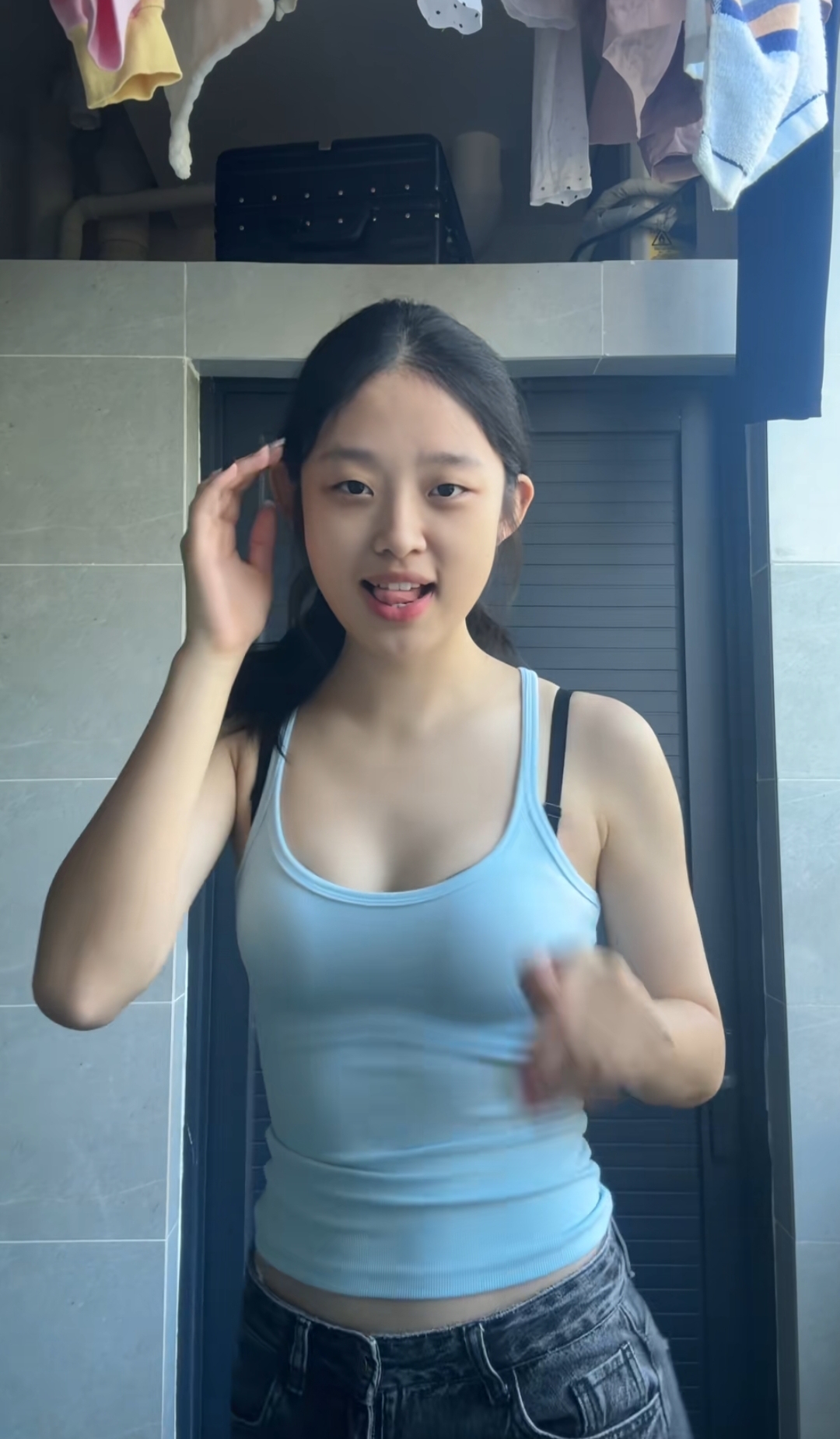 最青春阳光的穿搭就是背心配牛仔裤。美女人像群 青春 女大学生