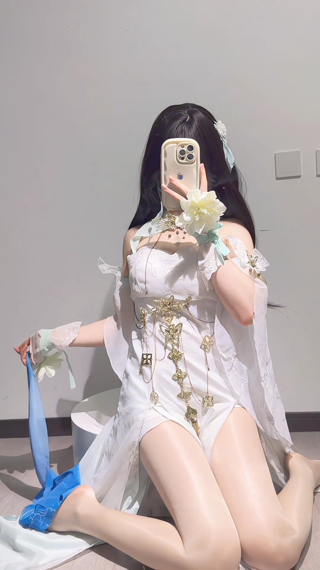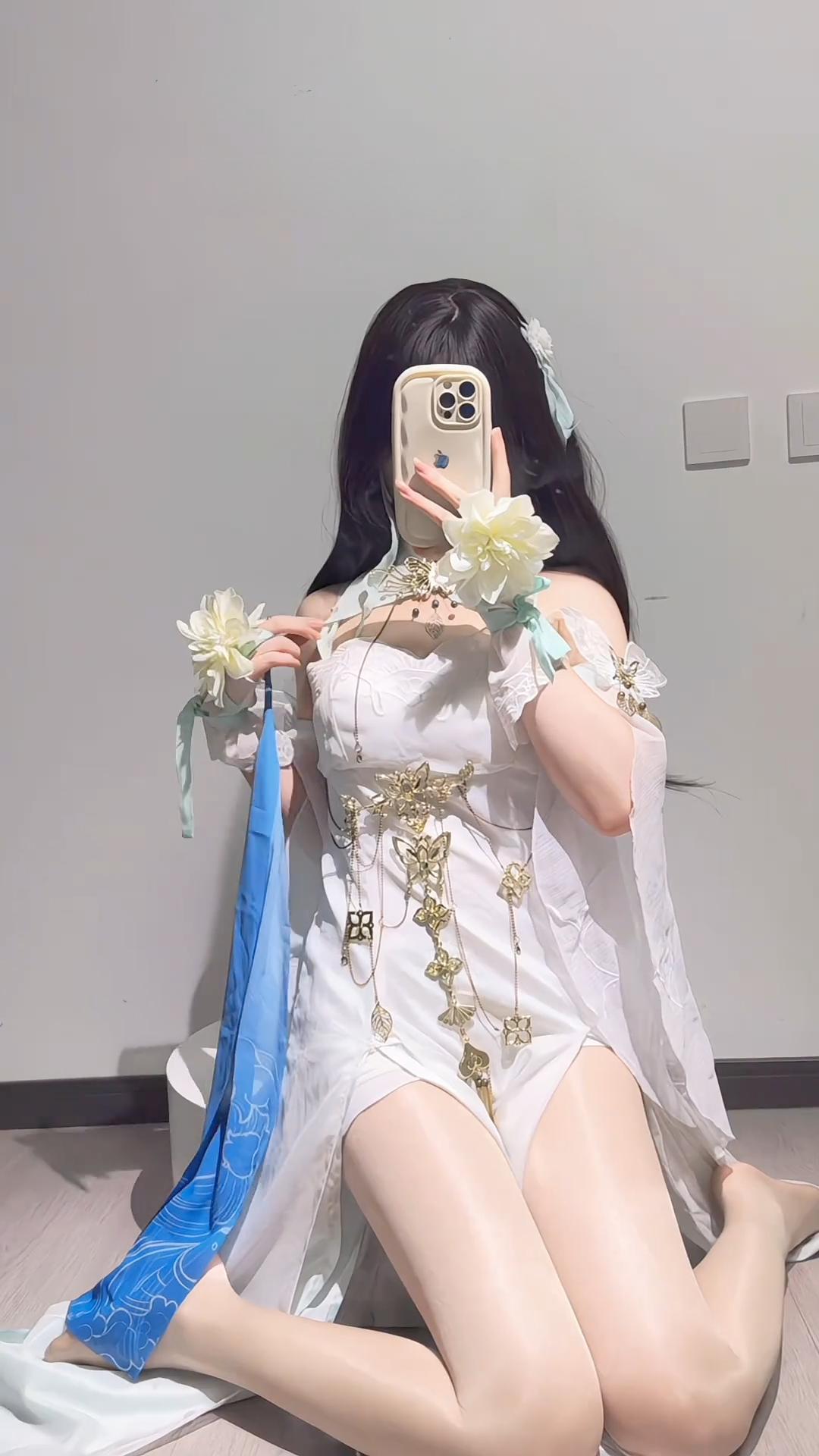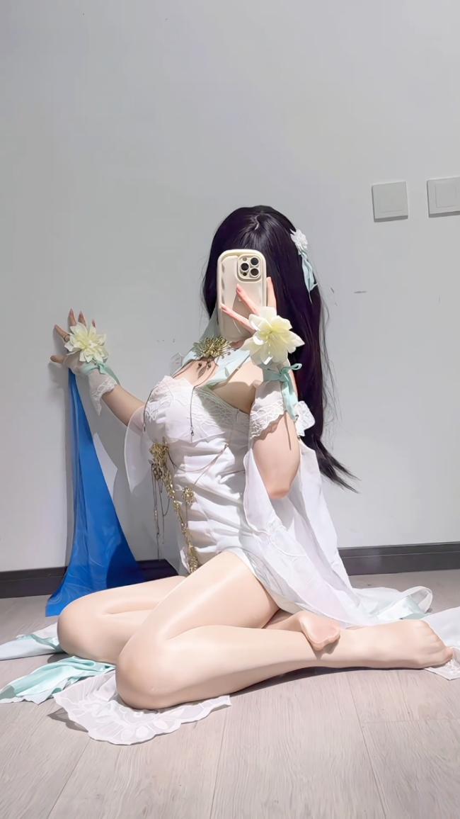 半透纱裙发光肌暴击!素问cos马油白丝透肤,丰腴肉腿Q弹到犯规~