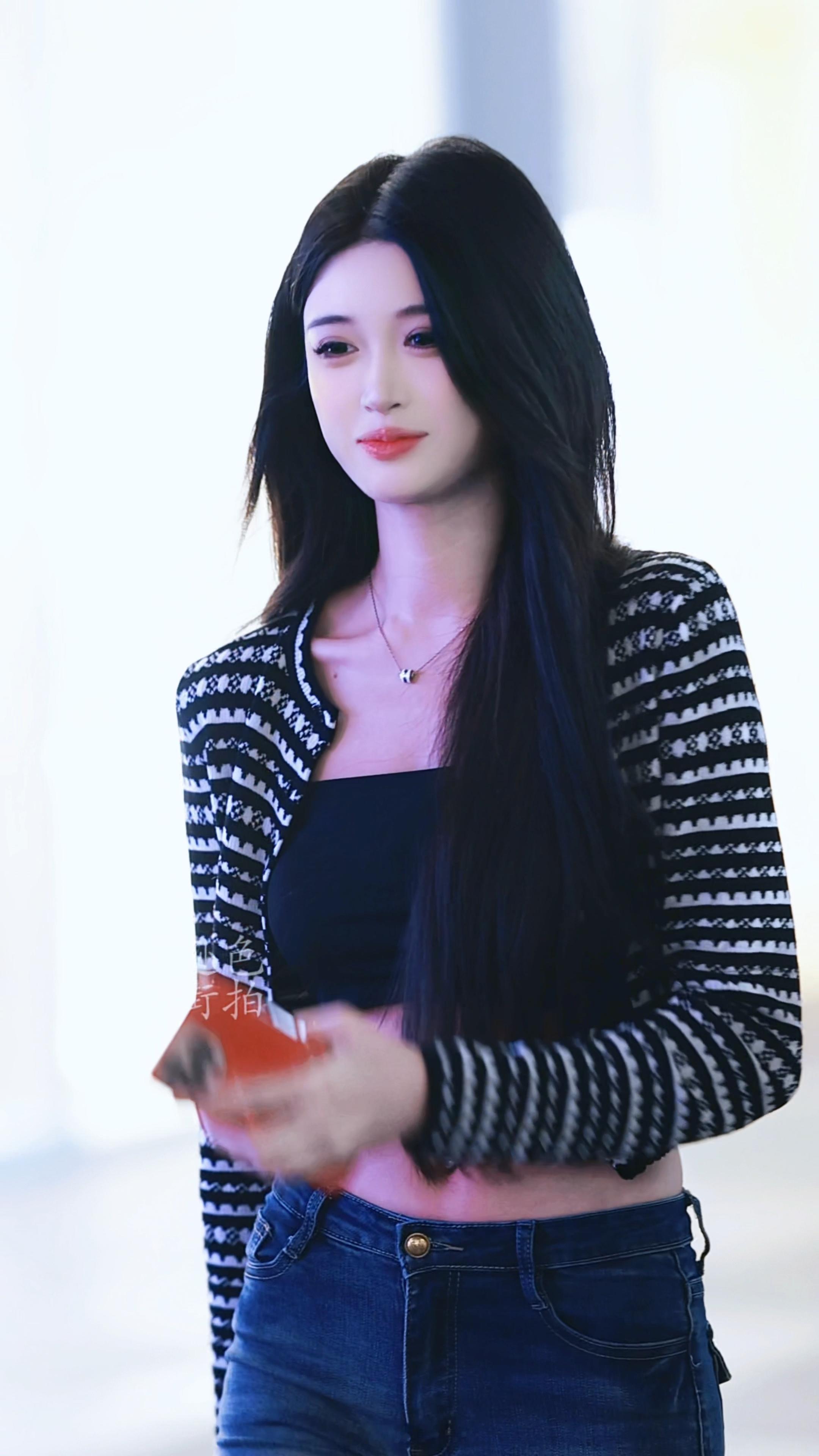 小姐姐一副国泰民安,贤妻良母的面容,搭配牛仔套装,真绝~