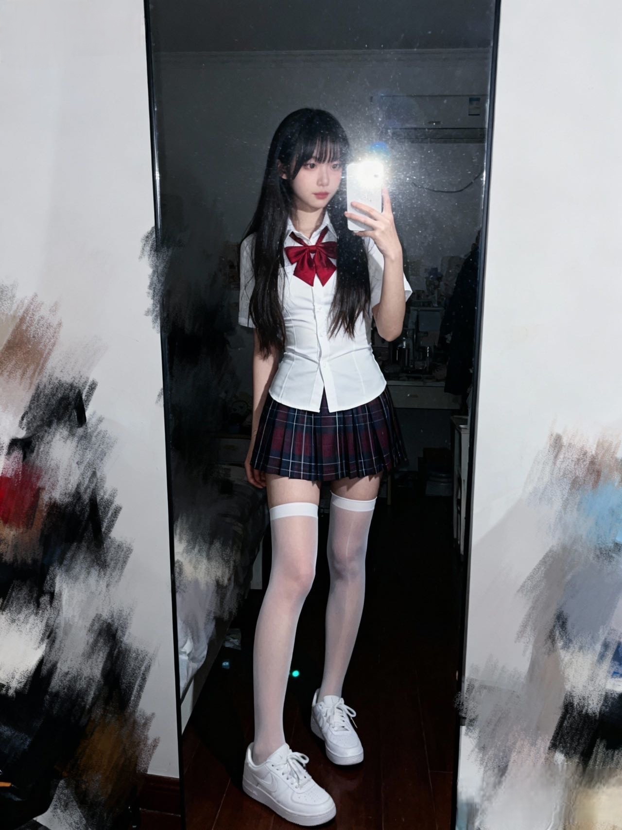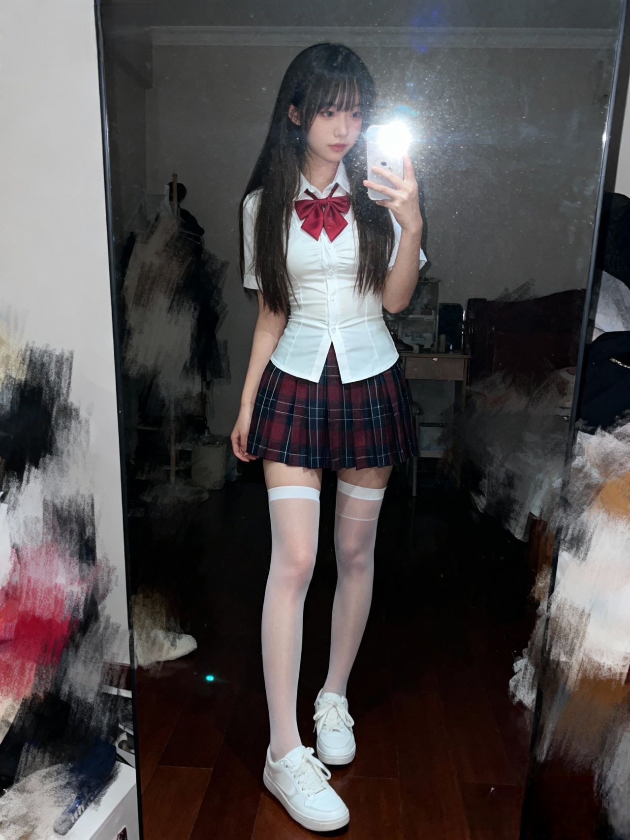 这套红白格纹JK制服太戳我了~修身白衬衫搭配酒红蝴蝶结,复古又元气,格纹百褶裙的红黑配色超经典,转圈圈的时候裙摆超灵动。加上白色过膝袜和小白鞋,甜妹感直接拉满,日常穿也不会夸张。晚上在镜子前拍出来的效果绝绝子,这种又甜又飒的风格,JK控姐妹一定要试试,出门逛街或者和小姐妹约会都超吸睛,分分钟化身校园剧女主~jk青春感穿搭 jk裙子穿搭 jk穿搭 jk紫色系穿搭 jk裙搭配 jk春日穿搭 JK风上衣 jk漫画感穿搭 美女人像群 喜欢黑丝还是白丝 高清美女 美女欣赏图片