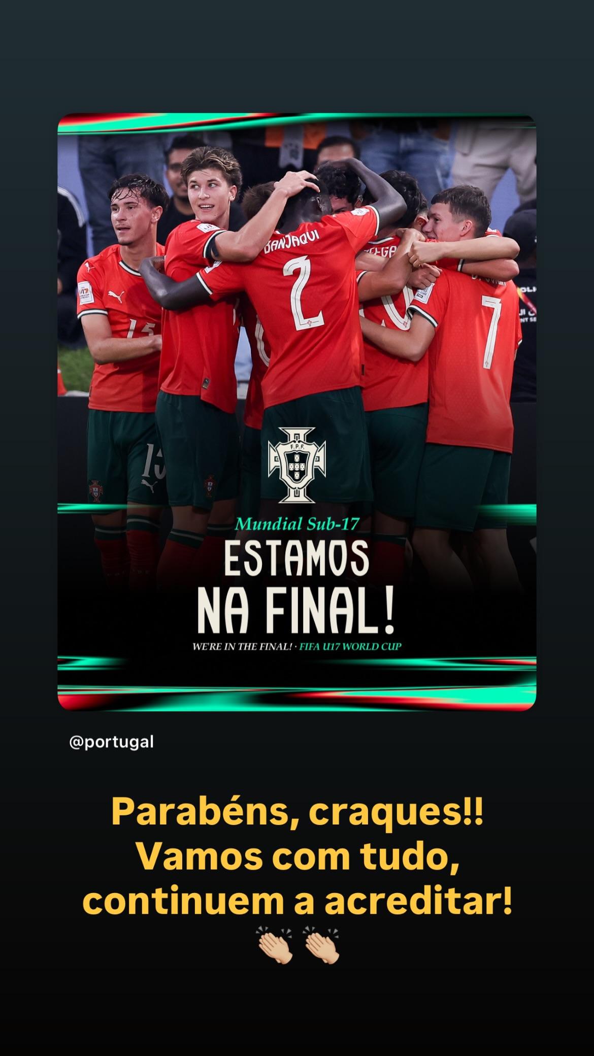 C罗的公开声援,既是对这批U17小将闯入决赛的肯定,也是在为决赛前的葡萄牙青年军打气。
