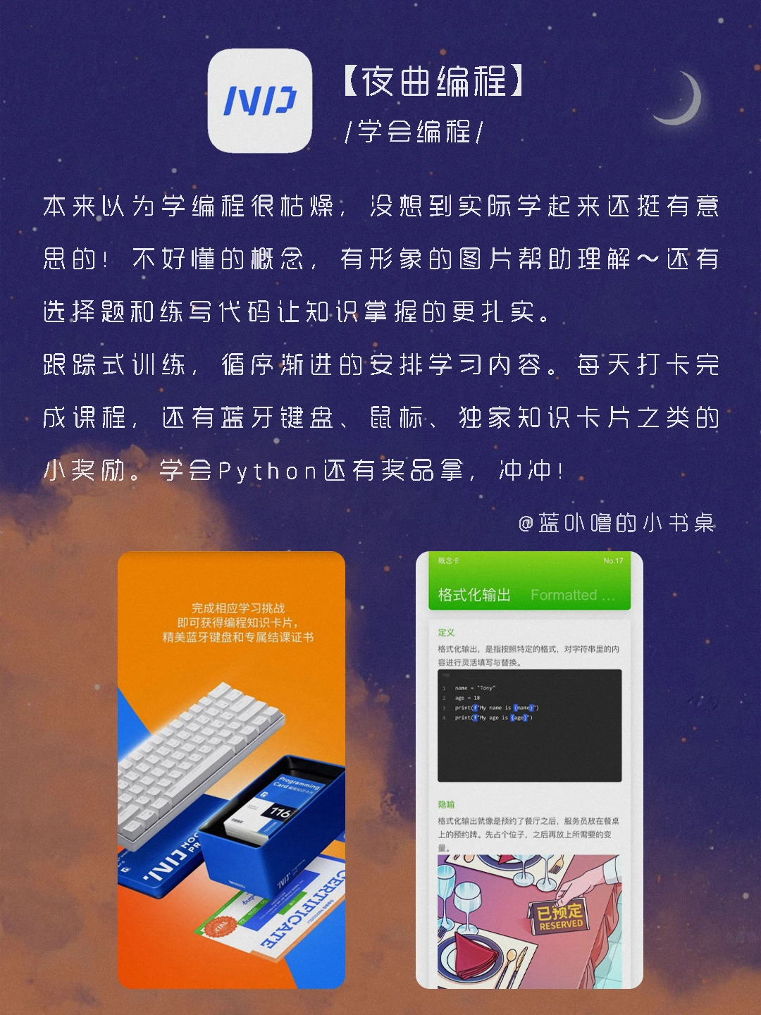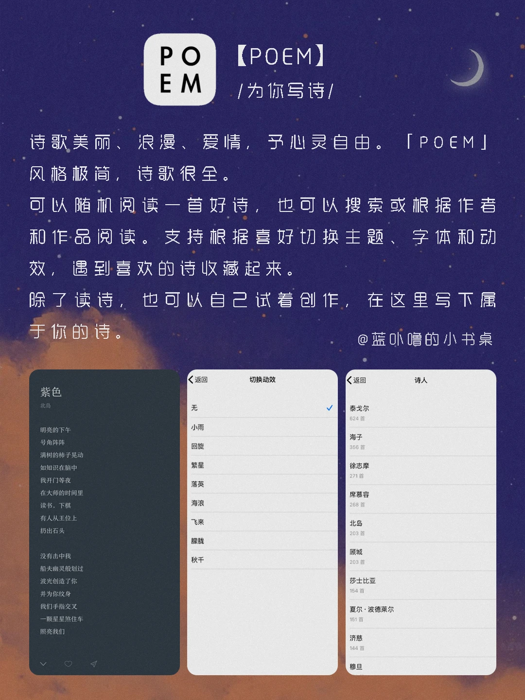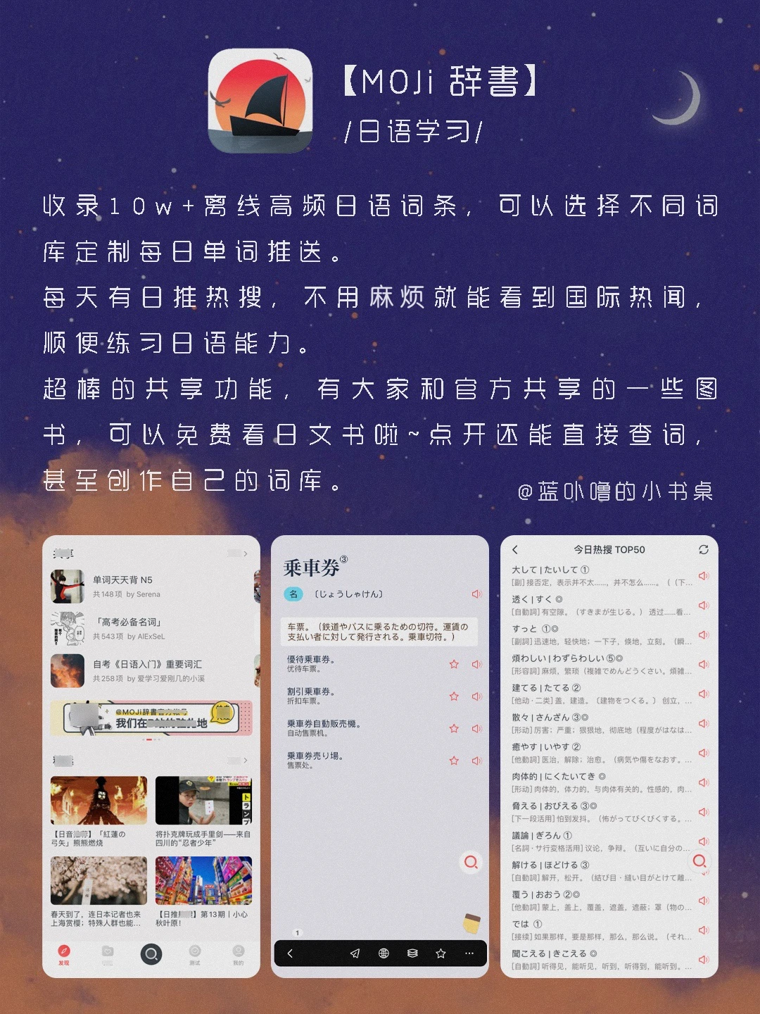 大家好,我是蓝卟噜的小书桌[派对R][派对R] 这些超实用的App,帮你轻松学习更多技能💥 然后惊艳所有人🌝 🌈猫鱼字帖 🌈脸疼 🌈夜曲编程 🌈Moji辞書 🌈POEM 🌈蓝铅笔 ✨当真心想要做成一件事的时候 人总是孤独的✨