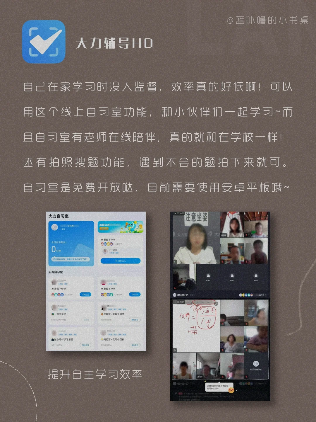 大家好呀,我是蓝卟噜的小书桌[喝奶茶R] 手机用对,假期才不荒废💥 最近挖到一些超实用的小众自律学习App,边玩手机边逆袭‼️ 🌠大力辅导HD 🌠口语侠 🌠Sudio蓝牙耳机-音乐伴读,治愈又解压哇🤗 🌠酷玩地球🌐 🌠时间花园 🌠Anki备忘录 🌠西窗烛 ✨能不能和你竭尽全力奔跑 向着海平线✨