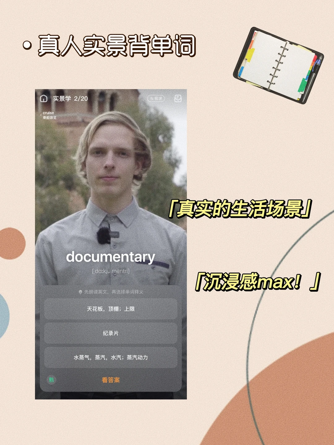 是歪果仁在国外录的视频哦~感觉就像他们在对着你说话一样,真实的生活场景,沉浸感绝了!语言环境有了,轻轻松松单词就背下来啦~