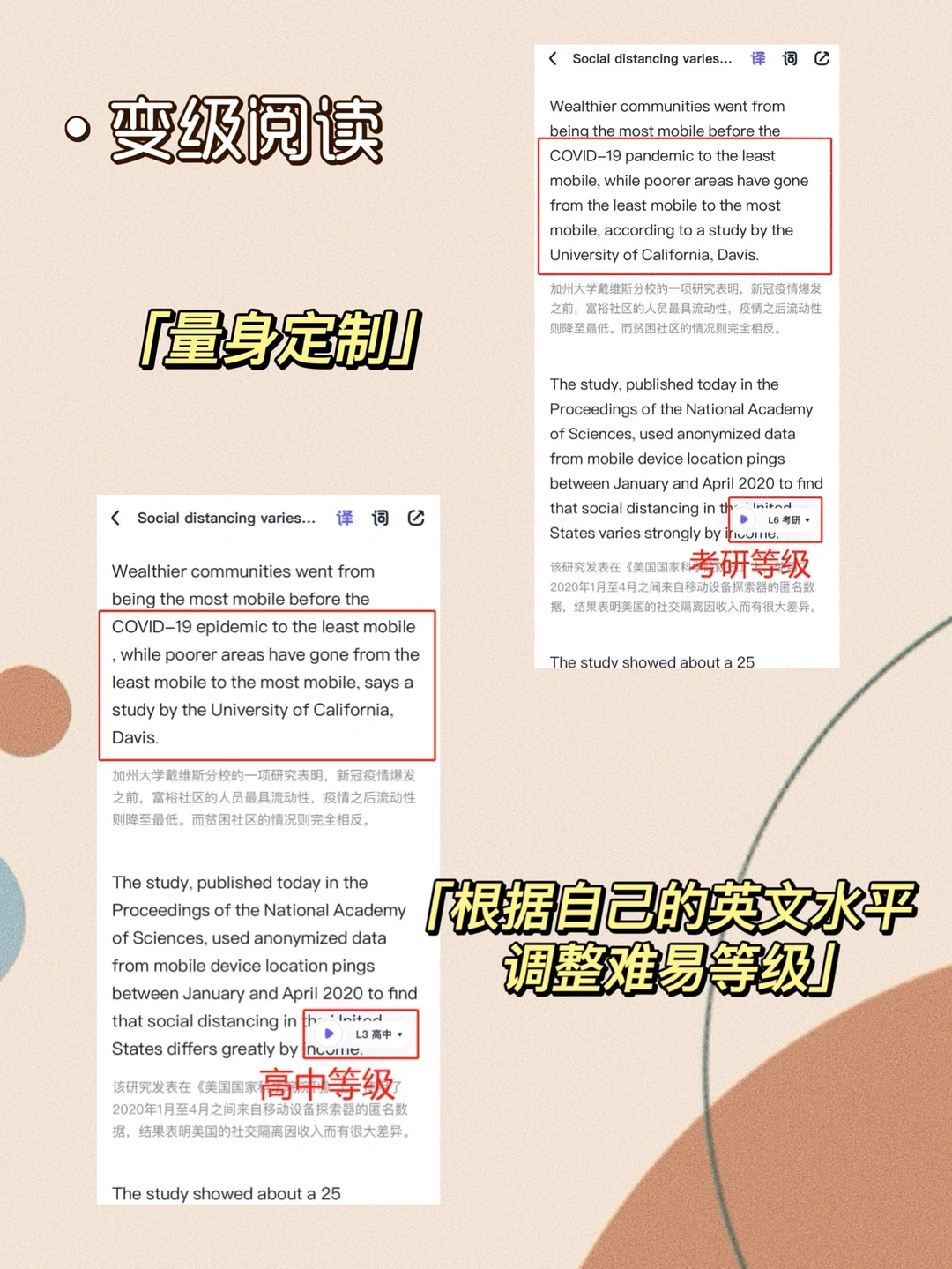 有大把大把的外刊读物,可以根据自己的英语水平,调整同一篇文章难易等级,量身定制什么的就很棒啊!