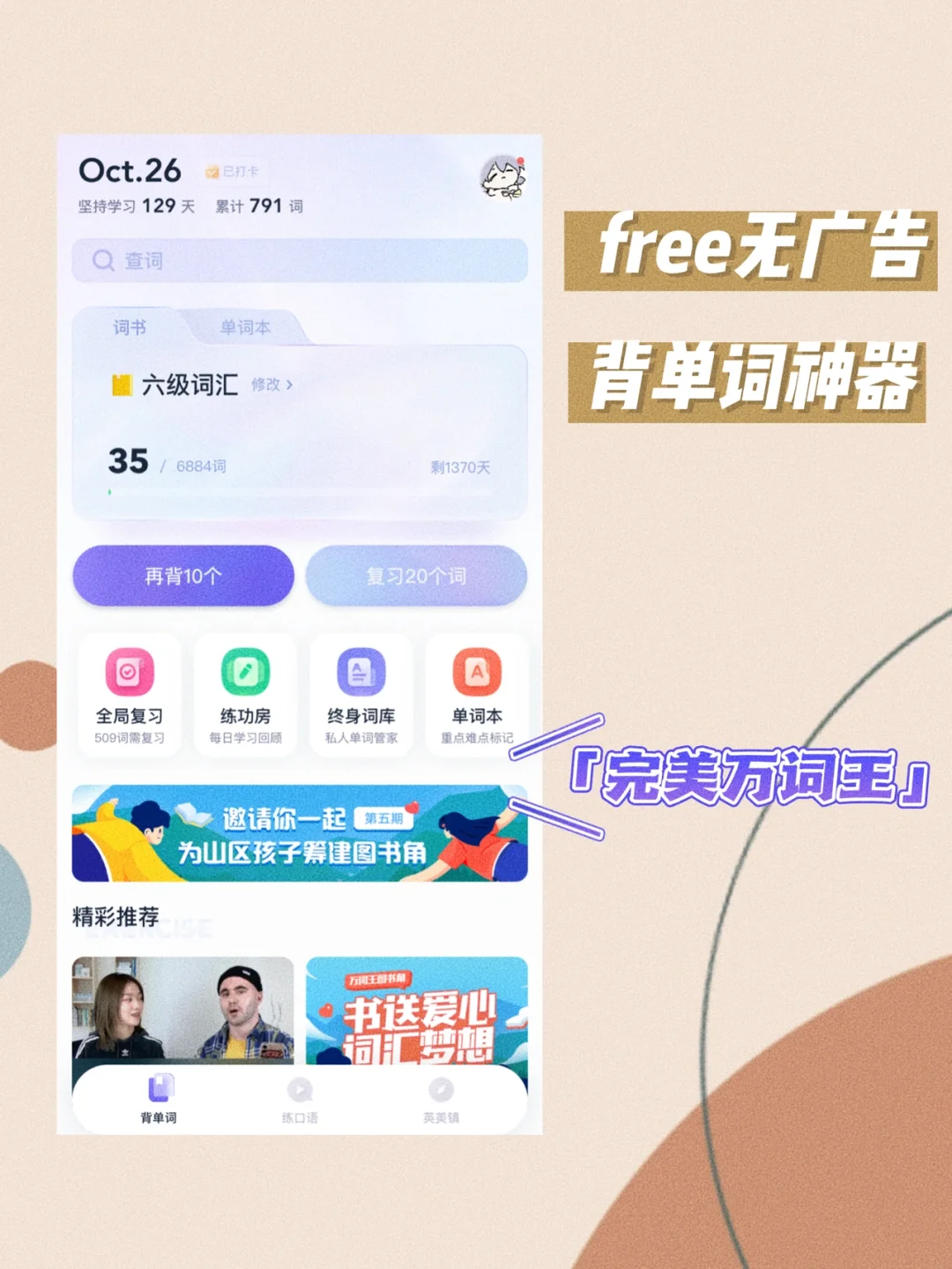 我试用了十几个背单词App,最后发现了一个free无广告的背单词神器👉🏻【完美万词王】