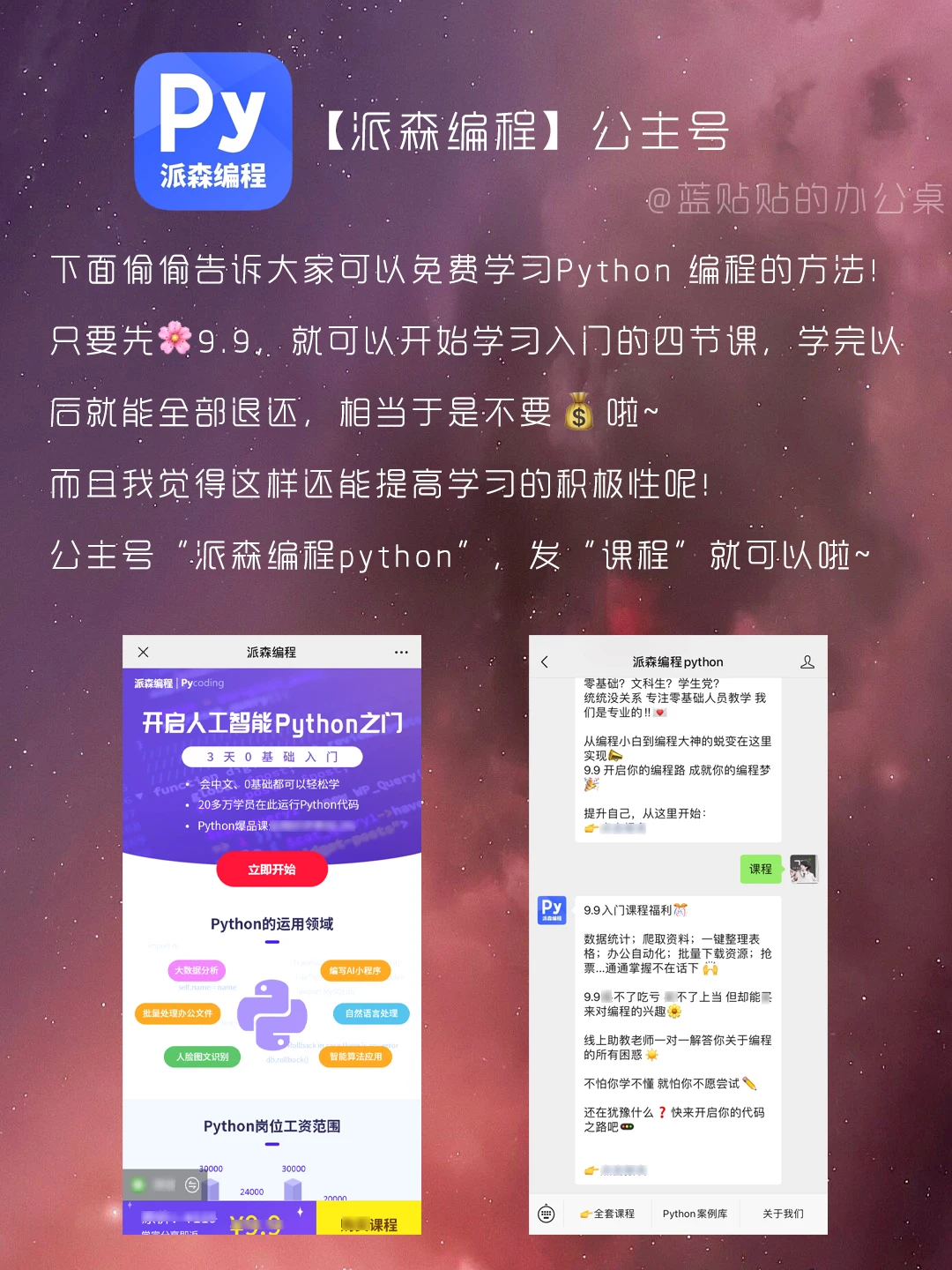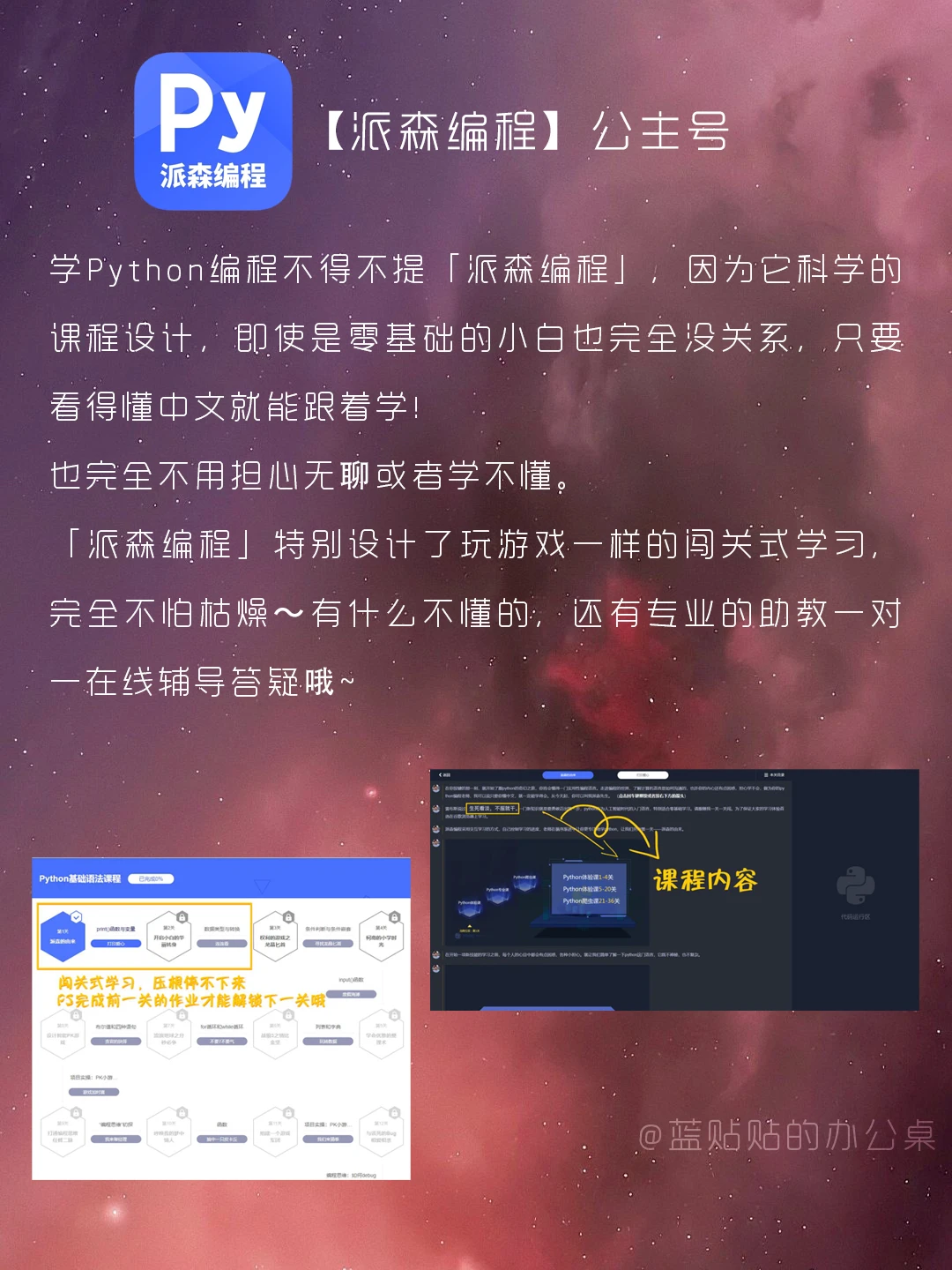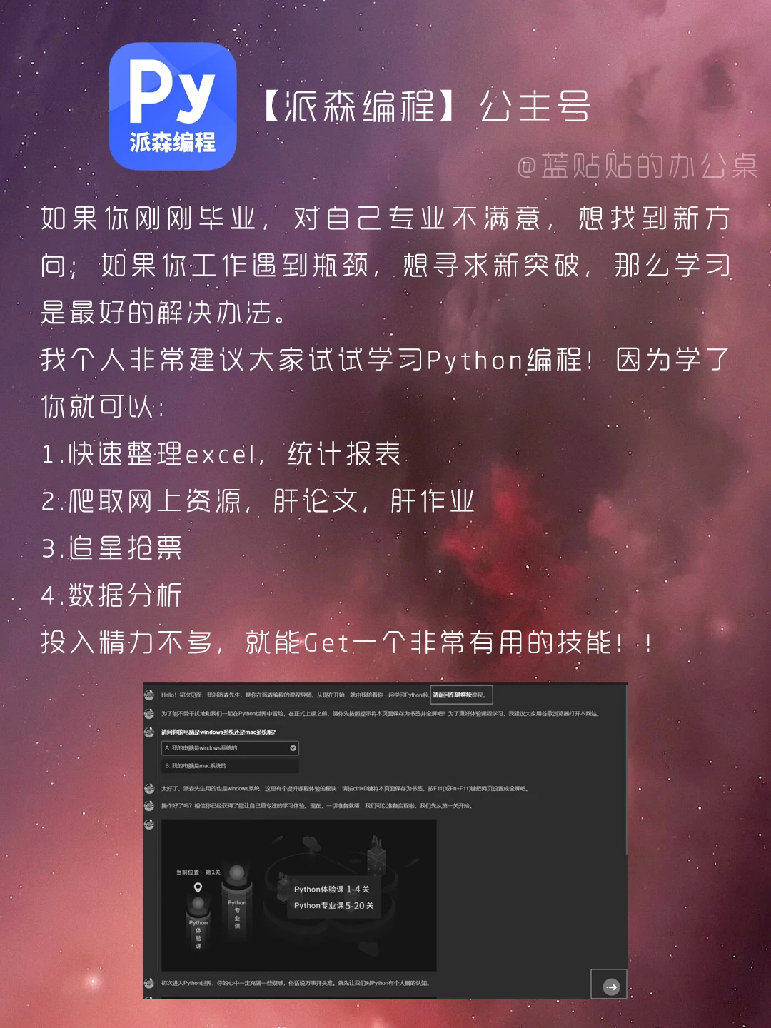 大家好,我是蓝贴贴的办公桌[派对R][派对R][派对R] 越来越发现自我提升的重要性,多学习一个技能,总是会多一点机会和优势🙌🙌🙌 所以这次给学生党和上班族带来了一些学习技能的神器✔️✔️✔️ 让你用碎片时间,远超同龄人💥💥💥 让我们一起悄悄变厉害吧‼️ 而且还能获得第一桶💰呢‼️ 💡蓝铅笔 💡闪光视频 💡鸟哥笔记 💡一里蓝 💡派森编程 如果觉得有用的话 让我看到你们的小❤和小⭐呐~