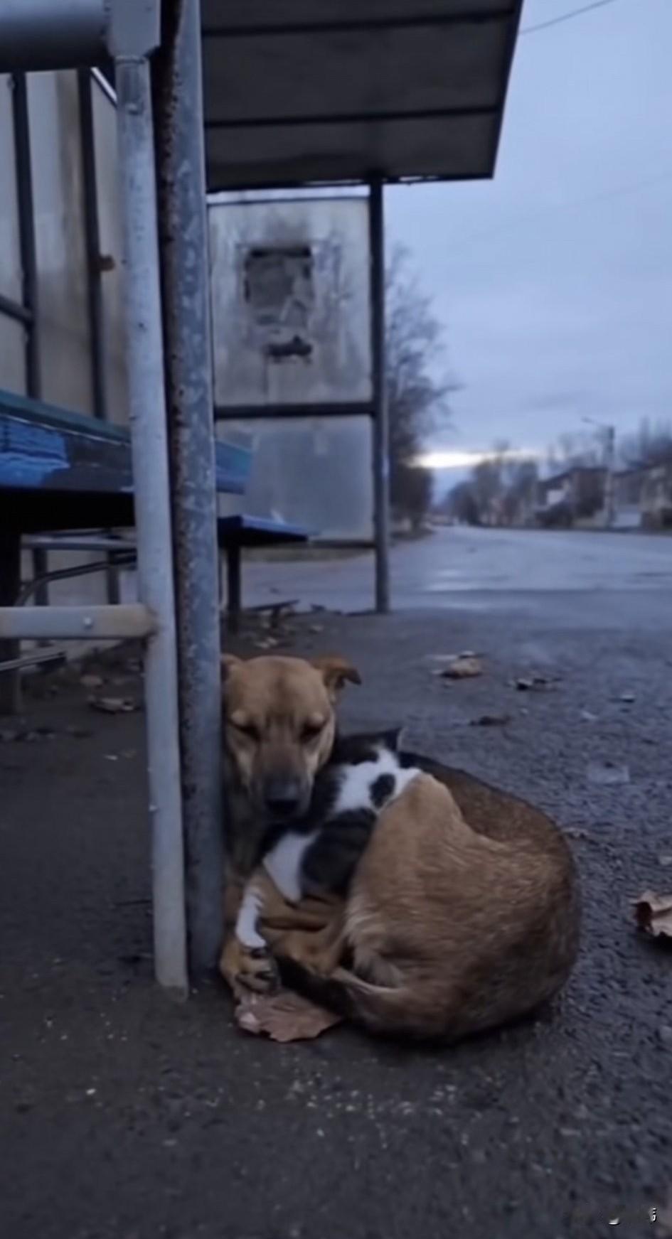 泪目了!这天傍晚,一位小姐姐去公交车站等车,却看到令人感动的一幕,一只可怜的流浪狗蜷缩在公交站铁杆旁边休息,它冻得瑟瑟发抖。 而就在这个时候,看到一只流浪小猫走了过来,来到狗狗面前,狗狗闻了闻它,就像好朋友一样,之后小猫就爬到狗狗的身上,一猫一狗就这样抱团取暖,虽然很可怜,但是很温馨。 小姐姐非常同情它们的遭遇,于是顿时心生怜悯,决定收养它们,他先把它们带去宠物医院检查并打了疫苗,然后救带回去收养了,相信在她的照顾下,它们也会越来越好的。