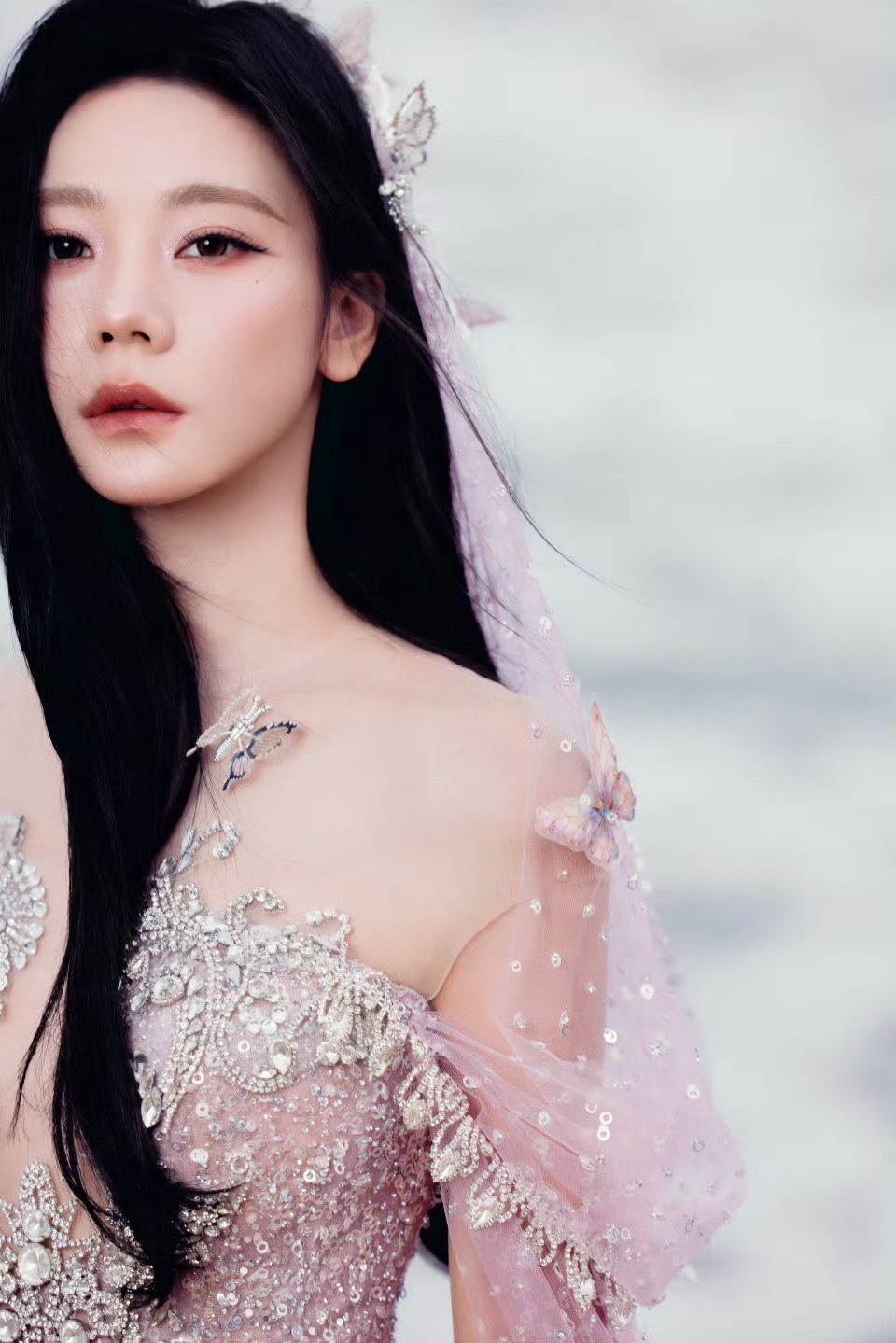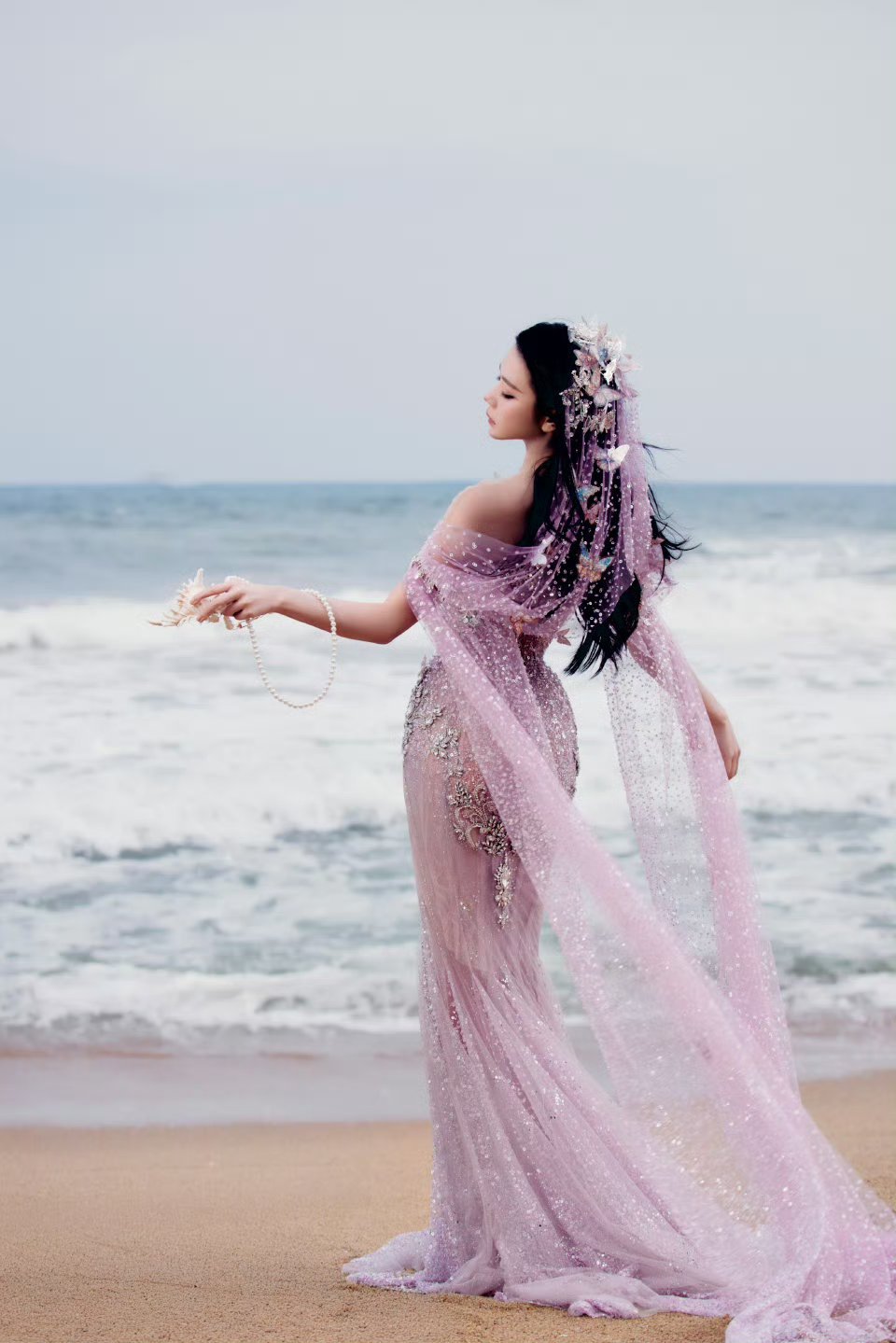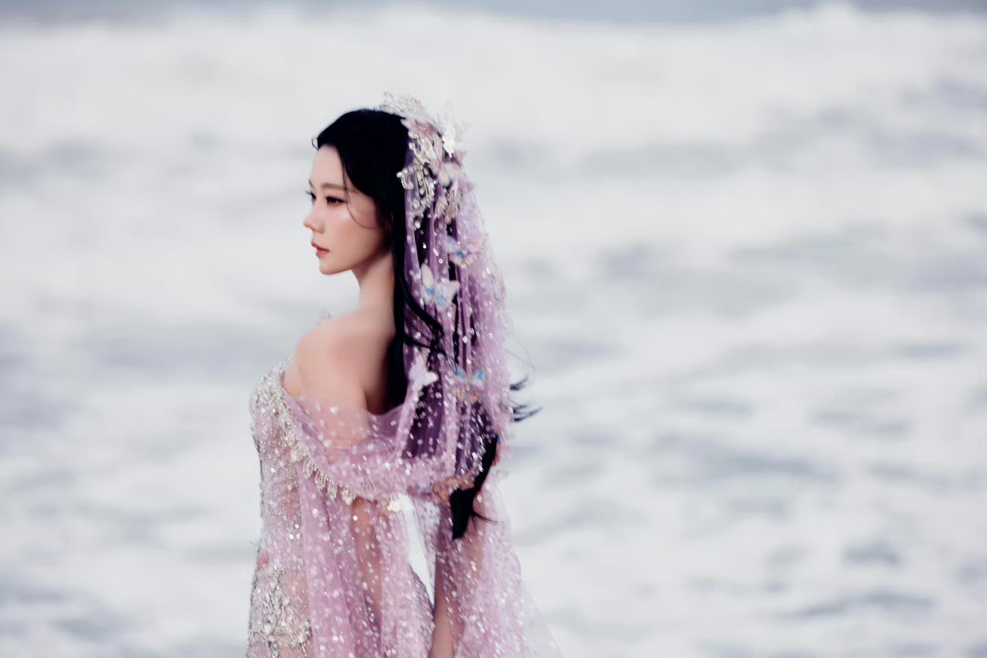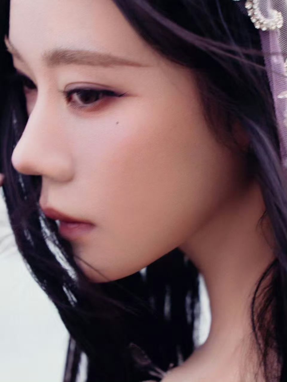 棚顶滤过的光,落在灰针织的纹路里,像揉碎的云。发鬓挽成的圆髻,垂着几缕软发,随风