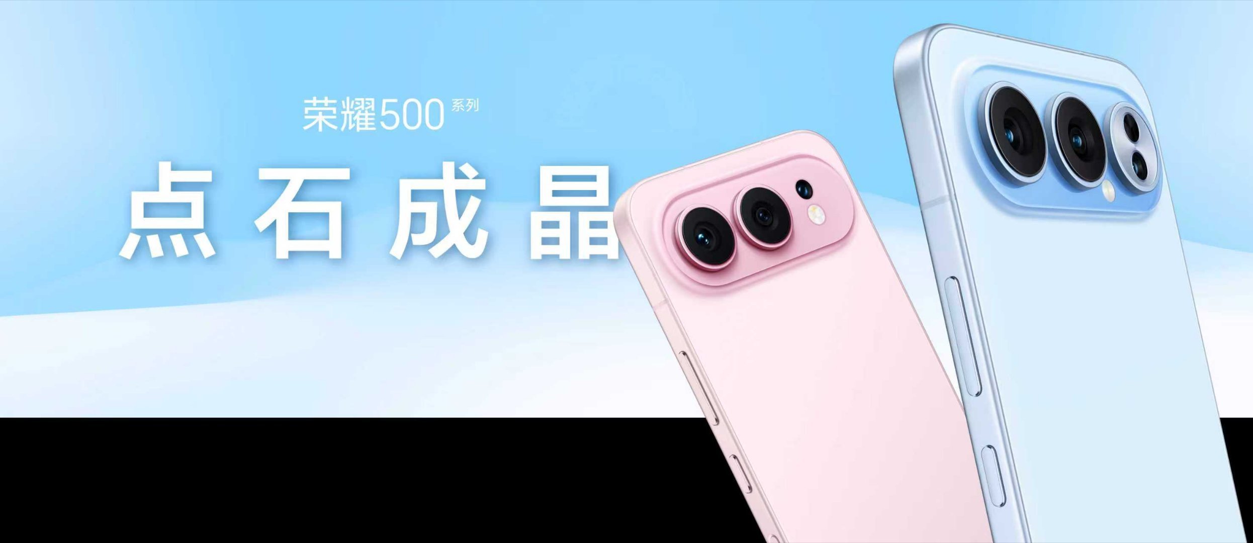 系列推出海蓝宝、星光粉、月光银、曜石黑四款“好运水晶配色”。背板采用一体冷雕工艺,历经40多道工序,在玻璃上实现了的96%超高透光率,带来通透高级的背板美学。荣耀500系列以水晶岛镜头模组设计演绎简约美学,镜头布局精致有序。得益于架构重塑,手机在仅7.75mm的轻薄机身中,巧妙容纳更大电池,让设计与续航完美兼得,同时更带来横竖持握皆舒适无遮挡的舒适体验。