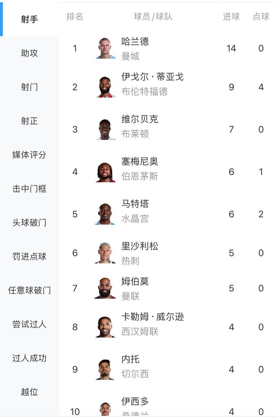 阿森纳最大弱点就是没有一名合格前锋。 这是英超射手榜前十,没有阿森纳一名队员。 曼联有哈兰德,利物浦以前有马内萨拉赫都能上榜,曼联有姆贝乌莫,热刺,切尔西都有球员。 阿森纳的呢??上赛季就没有,本赛季好像还是没有,完全的定位球体系。 感觉欧冠走不远,纯防守球队。[思考]
