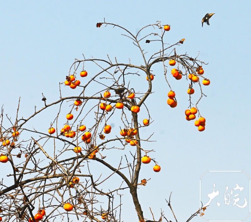 大皖新闻讯11月24日,大皖新闻记者注意到,阜阳市临泉县黄岭镇政府大院里,小鸟或在广玉兰树的绿叶间鸣叫,或在落光了叶子的小树上栖息。院内3棵柿子树上,成熟的柿子如一盏盏小灯笼,在阳光下泛着诱人的光泽。偶有麻雀、喜鹊等鸟儿飞临,在枝头欢快地啄食,成为寒冬里的温馨一幕。
