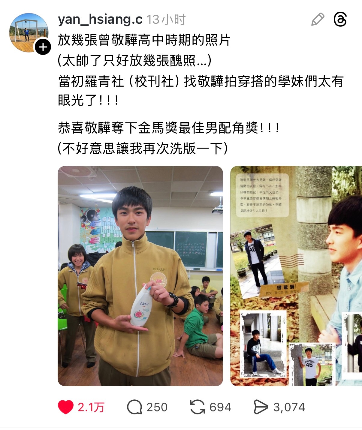 脆友分享曾敬骅高中时期的照片