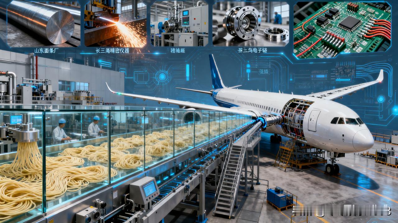 你能想象吗?山东一家面条厂竟然能造飞机!这听起来像天方夜谭,却真实发生了。制造飞机可不是件容易的事,要考虑飞行原理、结构设计、材料选择、发动机系统等多个方面,还得有零件、发动机、试飞场地等。 很多国家有能力制造飞机,但像面条厂这样能批量(私下)生产飞机的,只有工业配套齐全的中国才有可能。飞机制造需先设计方案,选好材料,制造并组装各个部件,最后测试。这一系列流程,需要完善的工业体系支撑。 中国有着完备的工业配套,从各地工厂生产零件,到组装大部件,再到总装厂组装,每个环节都能高效完成。相比其他国家,这就是我们的优势。所以,别小看山东面条厂造飞机这件事,这背后是中国强大工业实力的体现。或许这个节目就是做给西方(日本)人看的,毕竟飞机制造技术要求可不低。