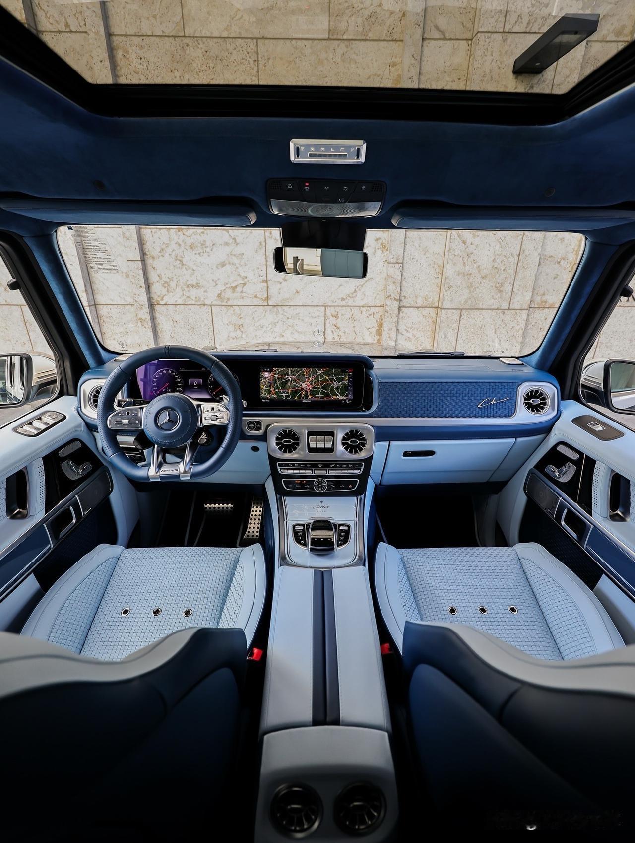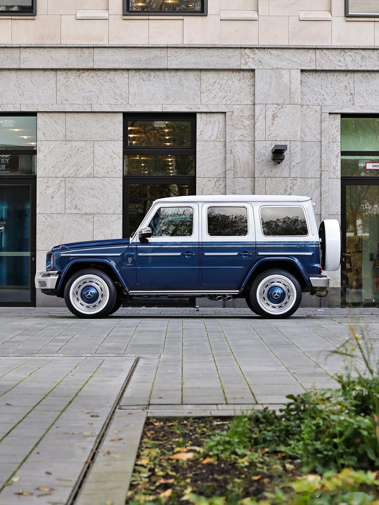 💙🤍 上蓝下白,撞色设计重塑硬汉形象 复古镀铬轮毂与备胎罩,既刚猛又优雅 内饰细腻高级,蓝白双拼配色和谐统一 外刚内柔,完美诠释硬汉也能很精致的独特魅力 怎么样 如此复古的奔驰大G是不是你喜欢的样子? 车顶如果再放两块雪板,开着它去滑雪⛷️ 简直完美 每日一款车