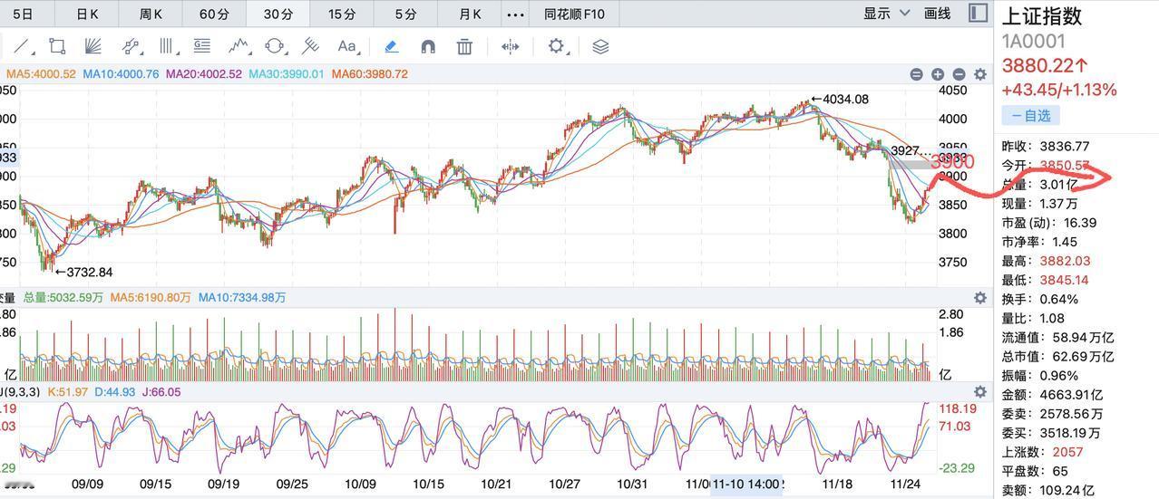 今天谨慎操作!大盘短期的反弹到3900点左右,3900点后需要确认方向,这个时候如果贸然进场很可能要吃面,特别是周四和周五又是月底,这个时候变数太多,今天的个股普涨,指数应该没有太大的问题,关键是明天该如何走?如果一举突破3900点当然是好事,然后呢?月底继续下杀到3850点?这个时候作为普通投资者该如何选择?本周五大概率不是个好机会! 别人恐慌我冷静,该出手就出手,别人热血沸腾时,我要让自己冷静下来,今天买进来,明天是否有机会出手?今天的就是个时间节点,需要好好去考虑自己的操作!