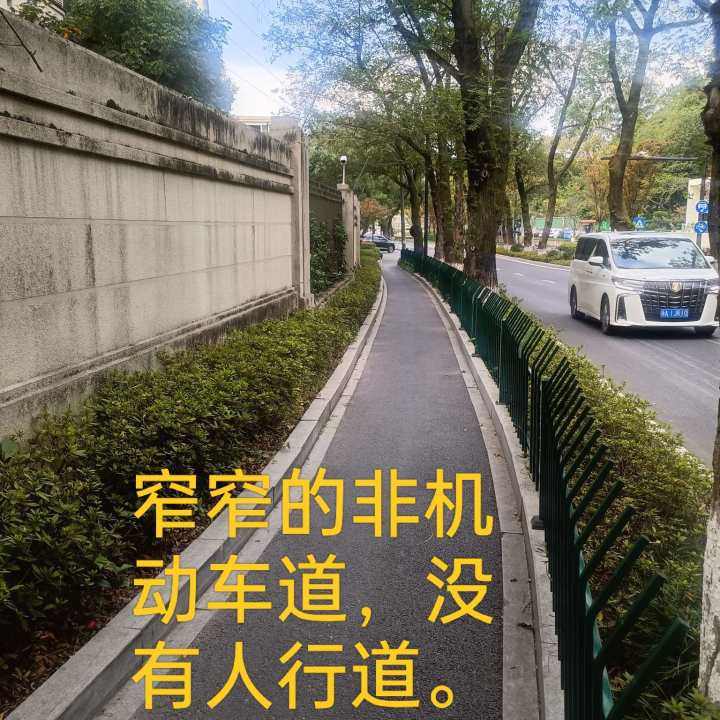余杭区良渚街道回复:该道路原为中灵线,是县道,故无人行道设置。街道于2022年底对该段道路进行改造,因道路两侧均为已建小区,道路调整空间极为有限。橙友反映位置为劝学里小区西侧,上传照片非机动车道东侧绿化带均为小区红线范围,无法进行改造施工。