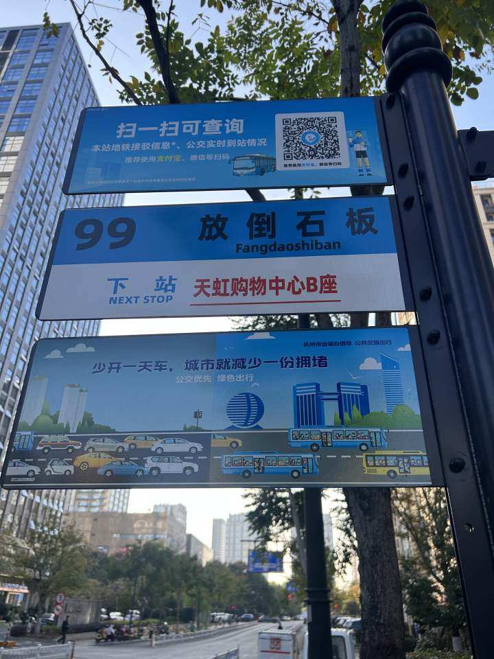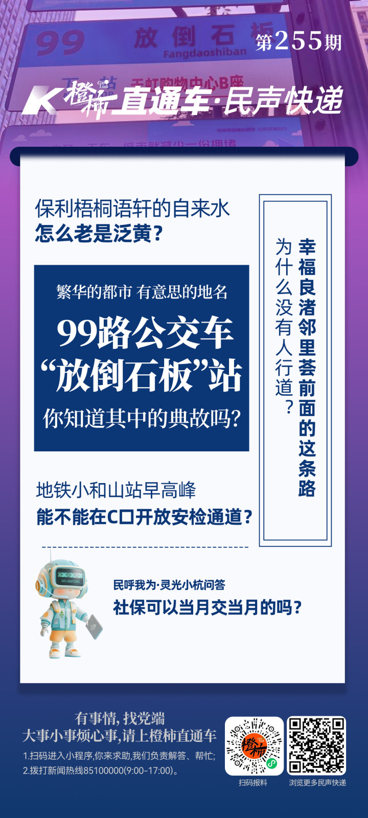 橙友“萌芽”在橙柿互动App发帖:繁华的都市,有意思的地名。杭州天虹购物中心五福店的不远处,99路公交车设“放倒石板”站,成为连接古今的地标。