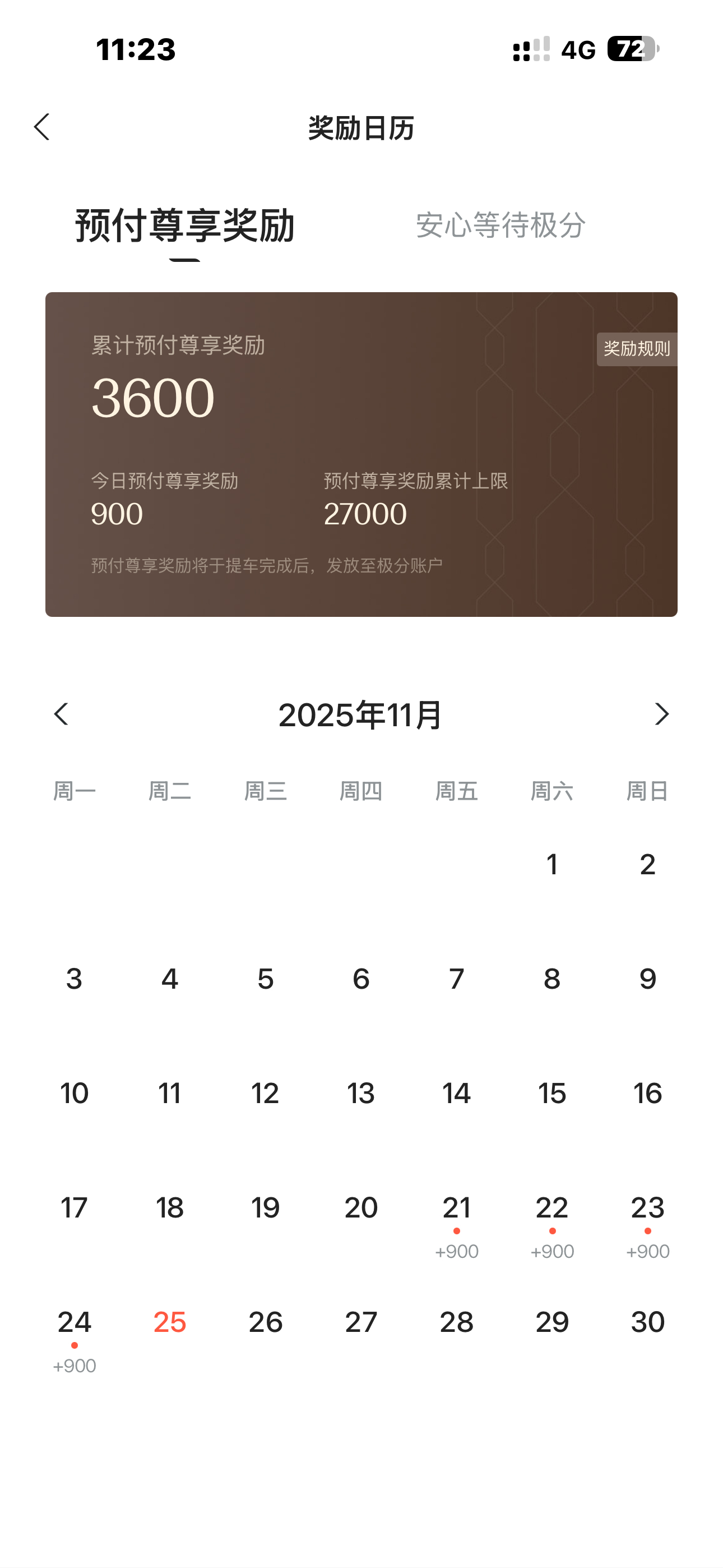 极氪9X真的太火了,排产不易,终于发运了。付完款后竟然还有预付积分奖励,给了4天