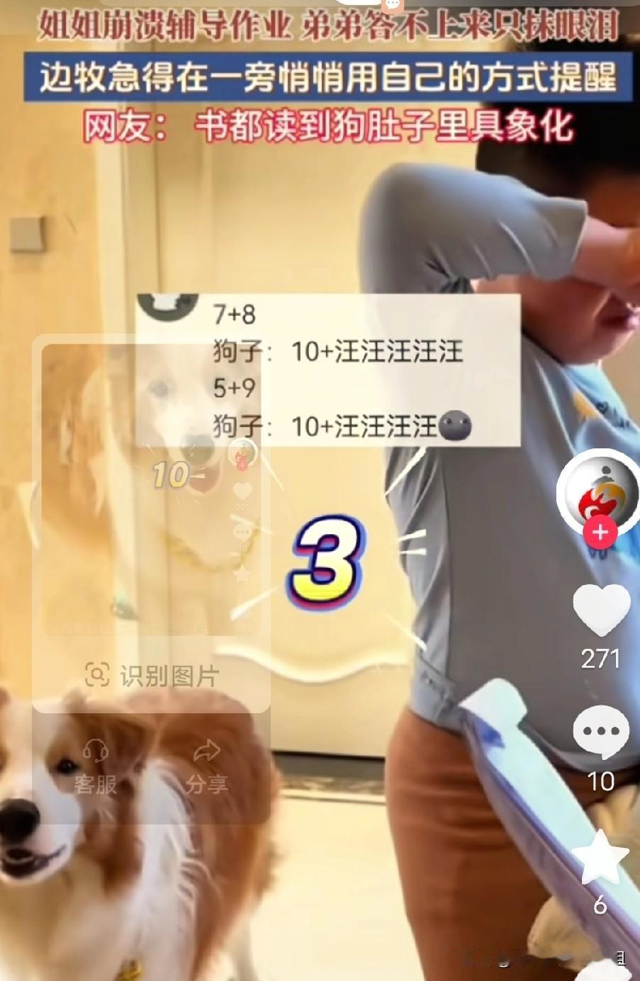 河南一姐姐给低年级的弟弟辅导数学作业,教了大半天弟弟还是不懂加减法怎么算,姐姐都快要崩溃了,她直接大声对弟弟说:“7+8等于几,告诉我?” 弟弟被姐姐这么一吼,眼泪开始在眼眶里打转,眼看就要大哭起来。就在这个紧张时刻,家里的小狗竟然成了“救星”。它似乎感受到气氛的紧张,走到旁边的发声按钮玩具上,先按了一下按钮,然后“汪汪汪”叫了五声。这一连串的动静让弟弟突然停止哭泣,眼睛一亮,大声回答:“是15!”妈妈杨女士在旁边记录下了这有趣的一幕,她解释说平时教孩子数学时,也会顺便教狗狗一起学,没想到这次狗狗居然真的“帮上忙”了。 这类“萌宠助教”的视频在网络上总能引发热议,看起来既温馨又有趣。类似的情况并不少见,比如曾有姐姐辅导弟弟作业时反被气哭,因为弟弟坚持说“几减5等于4”的答案是1。还有大学生在辅导年幼弟妹作业时,被一些看似简单却需要脑筋急转弯的题目难住,自尊心受到打击。这些现象反映出当前家庭教育中的一些有趣现象。