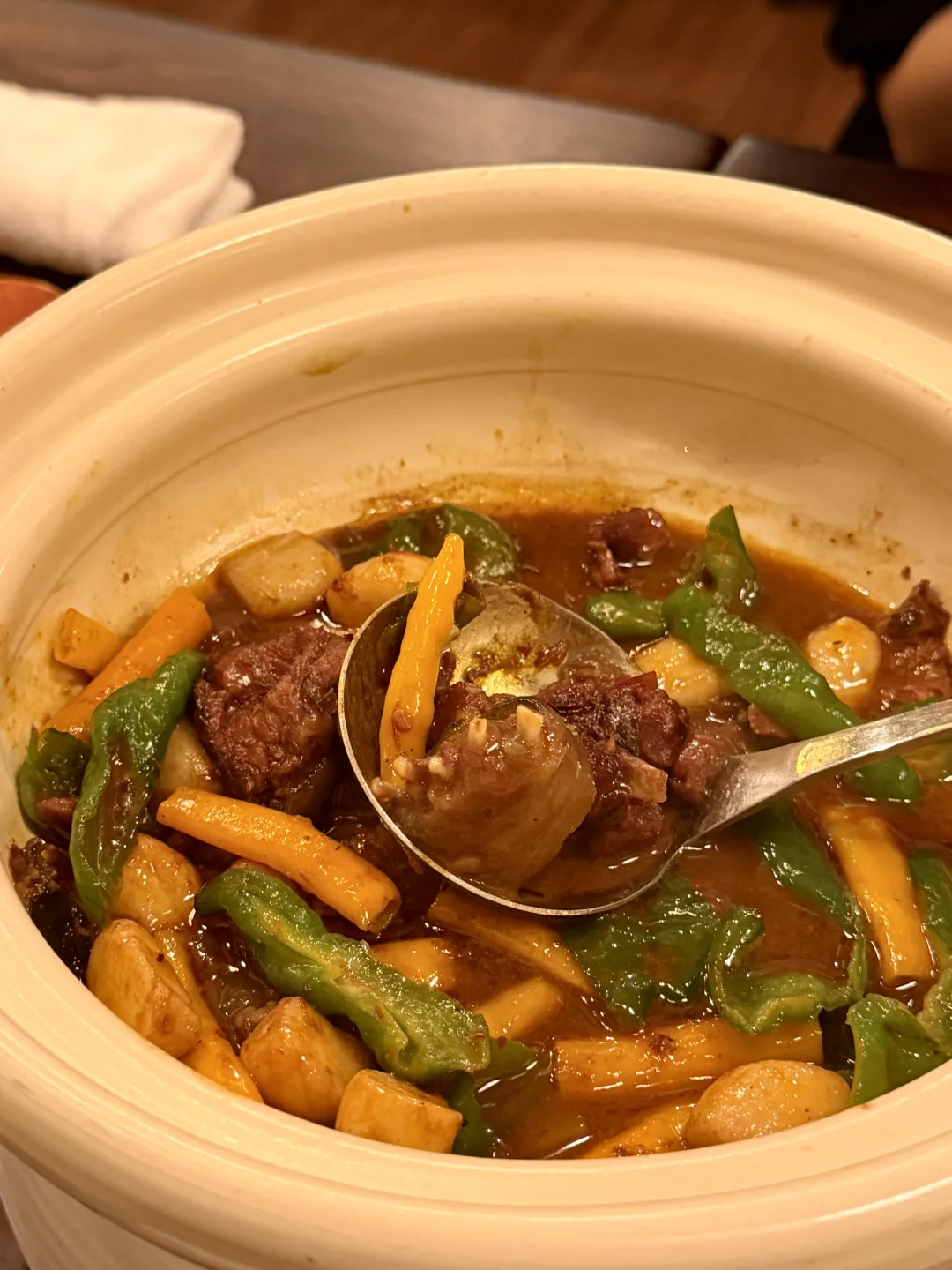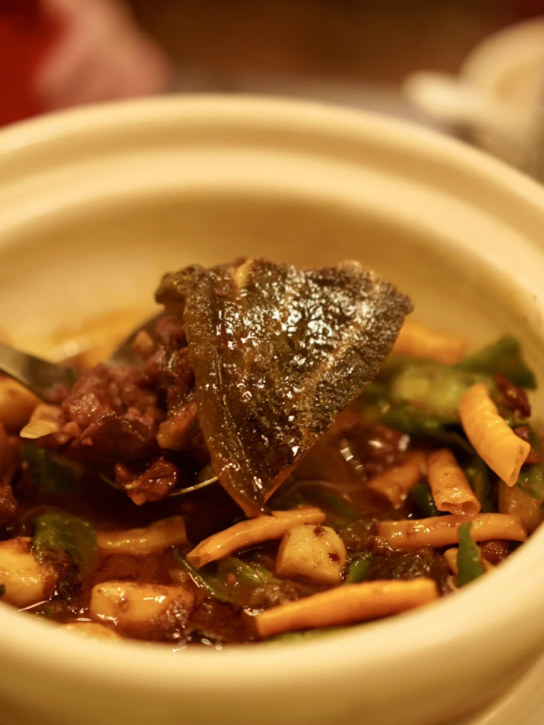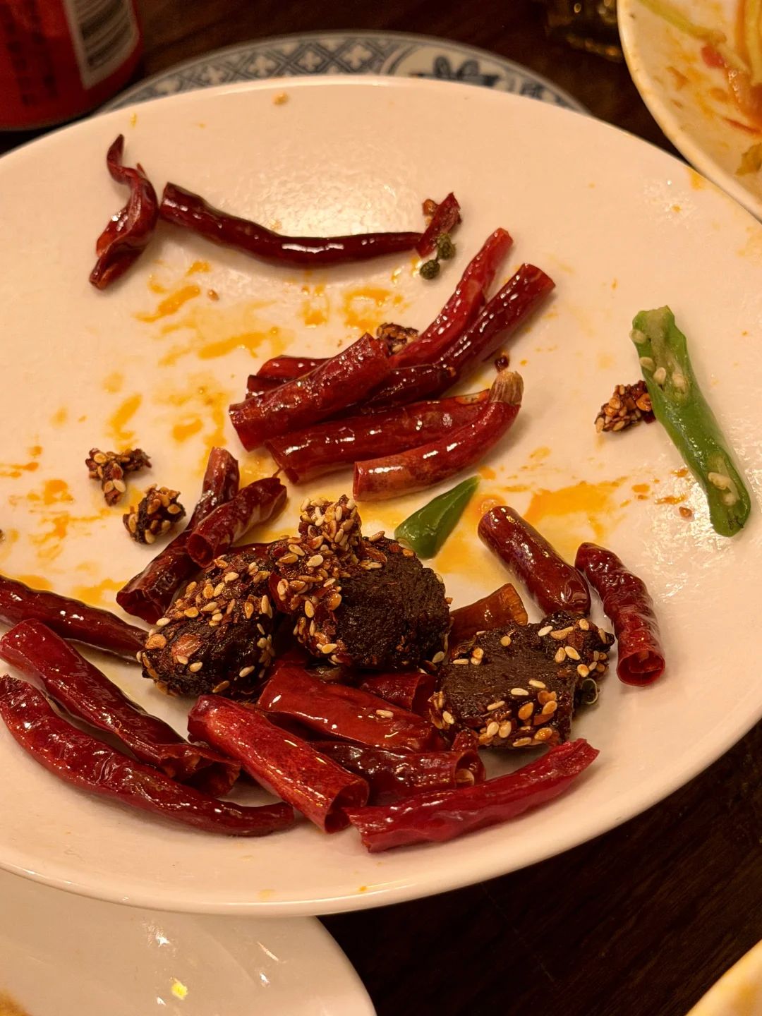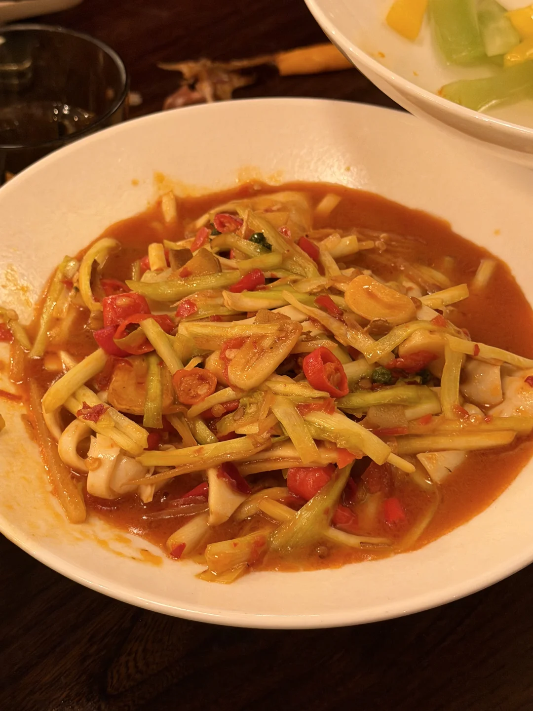 一进门有种三佰杯的调调 类似的布局 难拍的灯光🤣 架不住这家是真的好吃啊! 忙事情来迟了一小时 菜品没有拍到最初始的模样 温度肯定也不如刚上菜那会 但依旧是好吃! 入味却丝毫不油腻 个人觉得比某家风很大的湘菜更好吃! 强推蹄筋、甲🐟、丝瓜这几道 串串和图9的麻辣牛肉稍稍差点意思