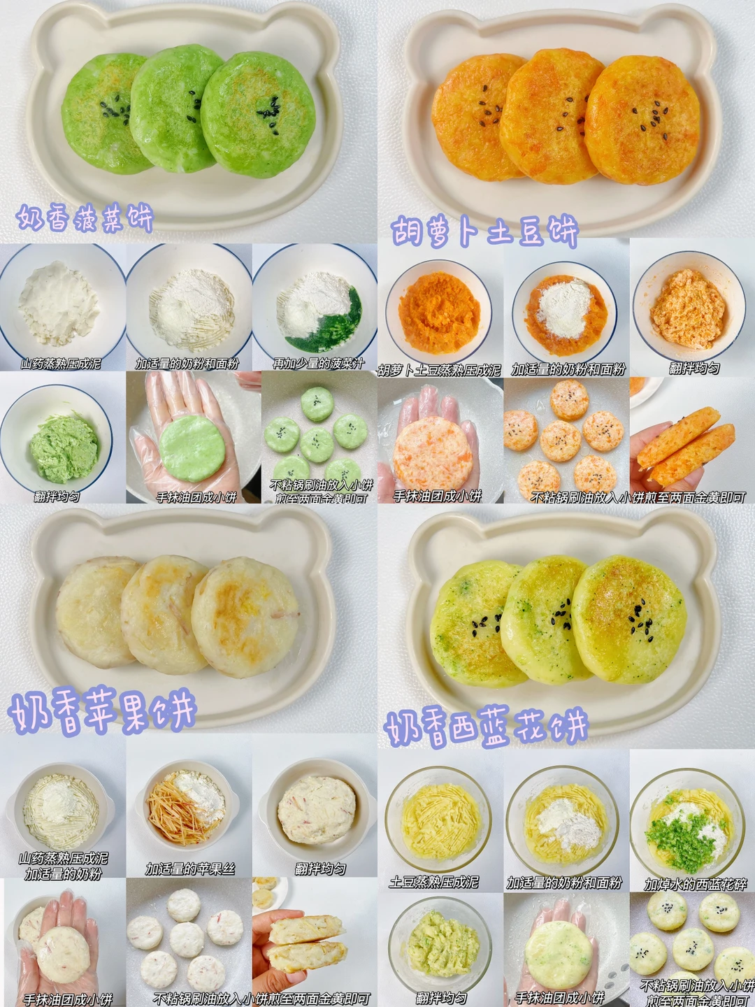 🔸山药紫薯饼 奶香苹果饼 西蓝花猪肉饼 白萝卜鸡肉饼