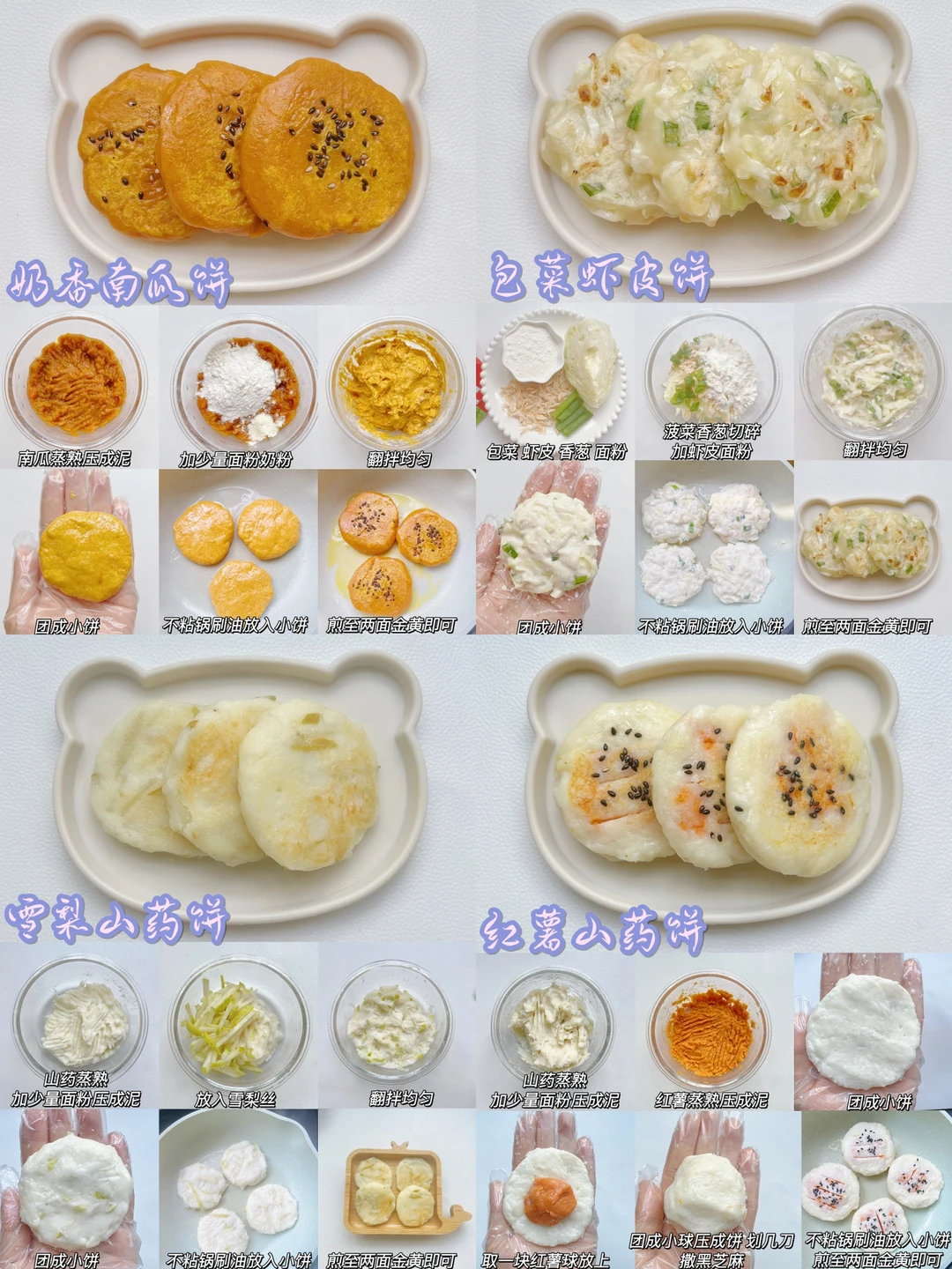 🔸香甜南瓜饼 西蓝花土豆饼 山药猪肉饼 胡萝卜鲜虾饼