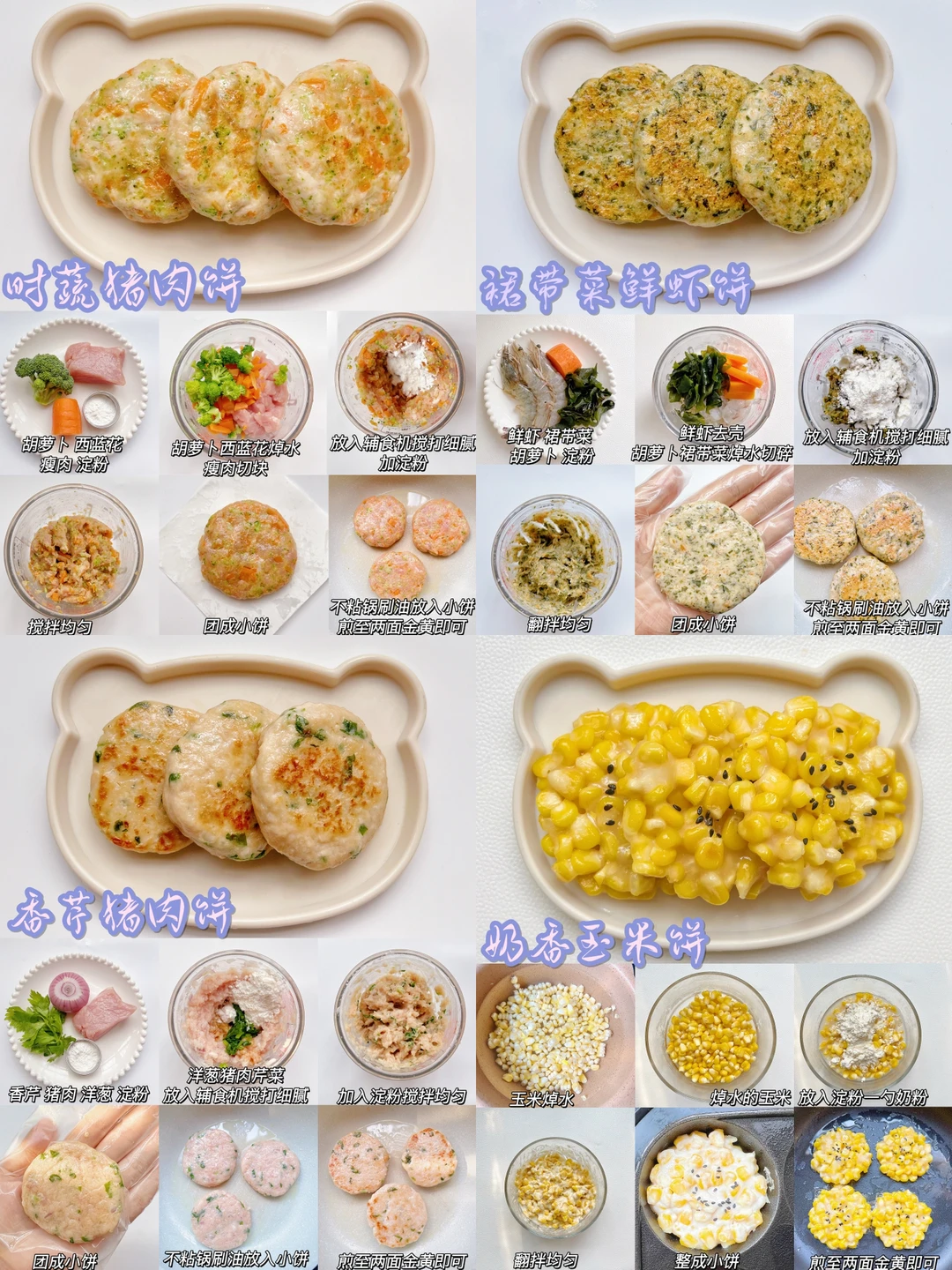 🔸奶香菠菜饼 胡萝卜土豆饼 玉米鸡肉饼 芹菜猪肉饼