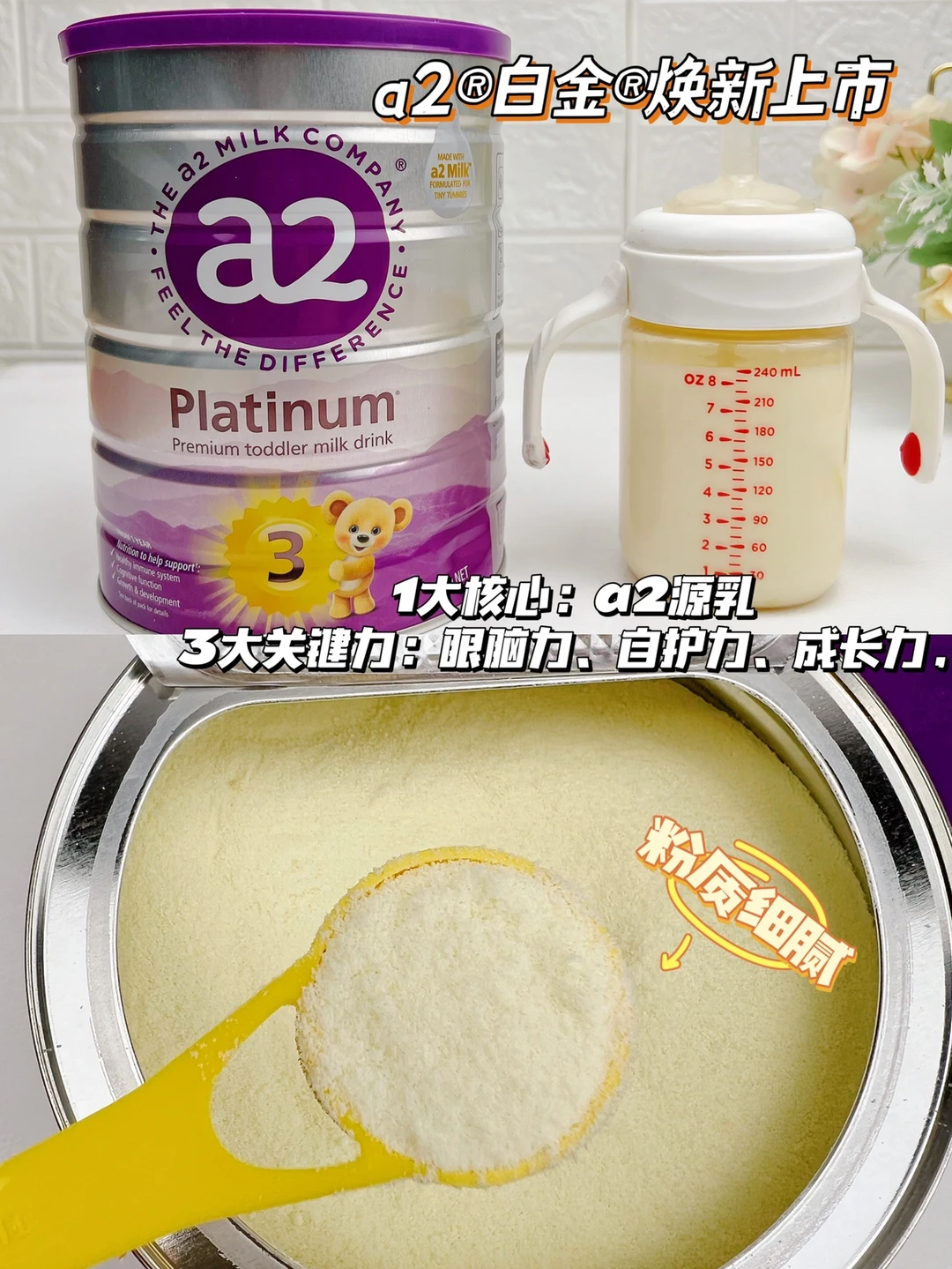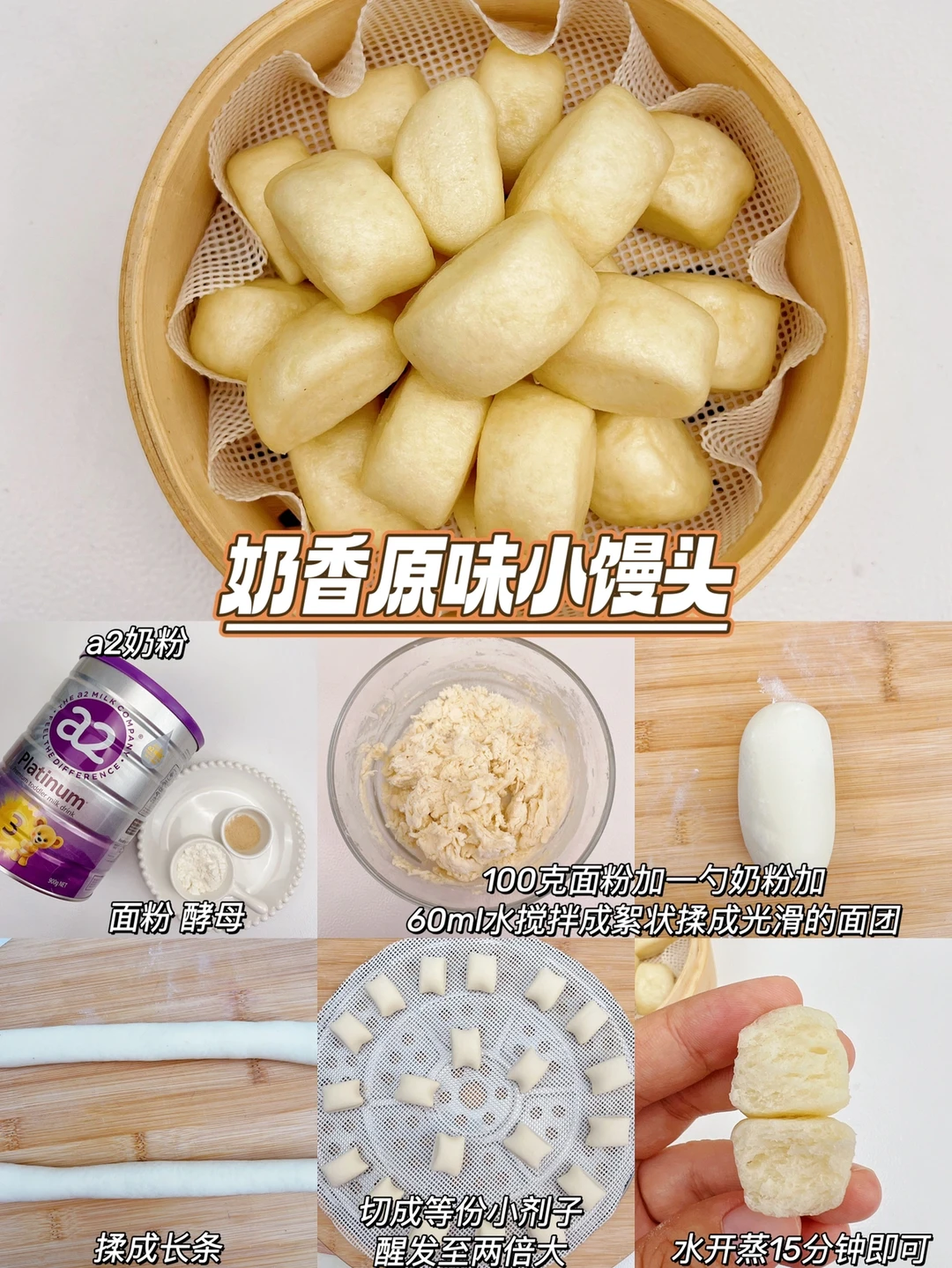 🔅这次做小馒头,我特意加了我家宝宝日常喝的a2奶粉,最近a2白金版升级了,我们买的新版紫白金刚刚到货,就赶紧做来试试,选这款奶粉主要是看中它的1大核心-a2源乳+3大关键力:眼脑力、自护力和成长力~