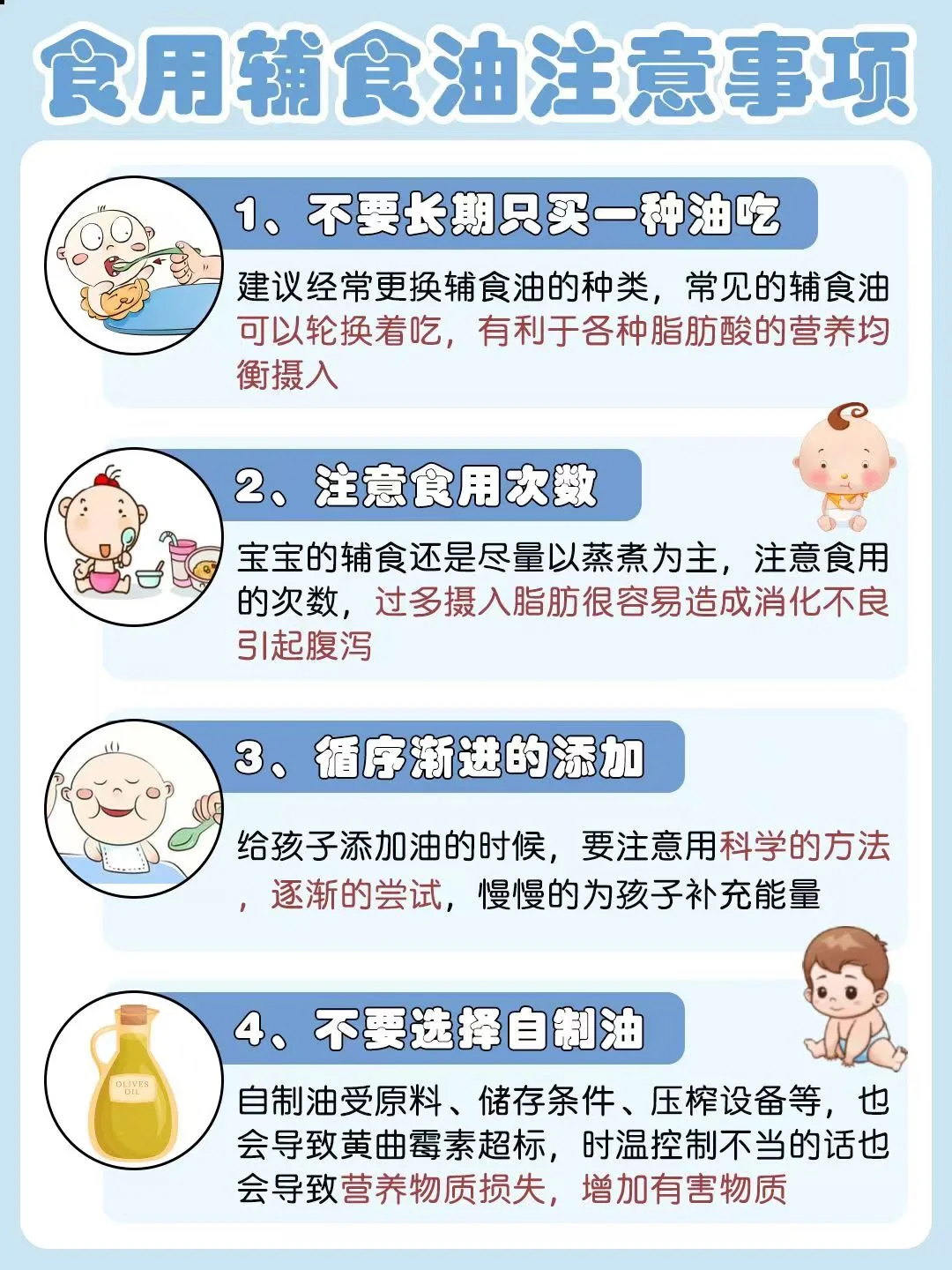 🥣很多新手爸妈不知道辅食油该如何挑选?选哪一种?如何去吃?我家月宝6个月以后添加的辅食油都是碧欧奇的,大品牌,品质有保证,而且品类也多,新手爸妈赶紧码住吧~