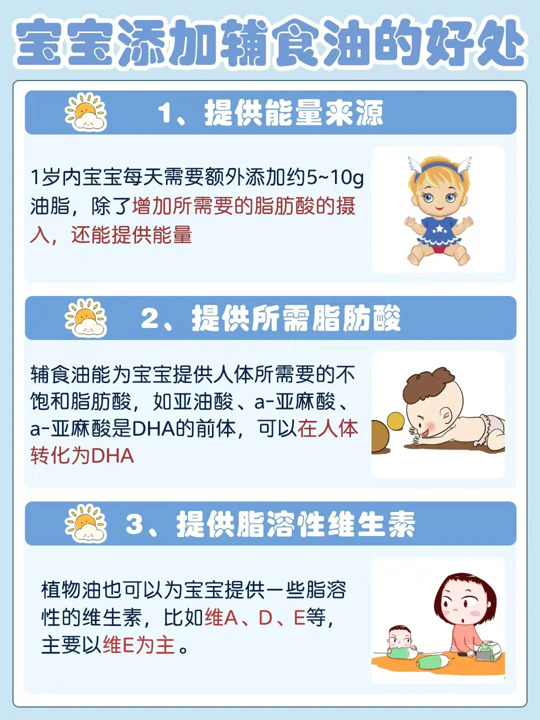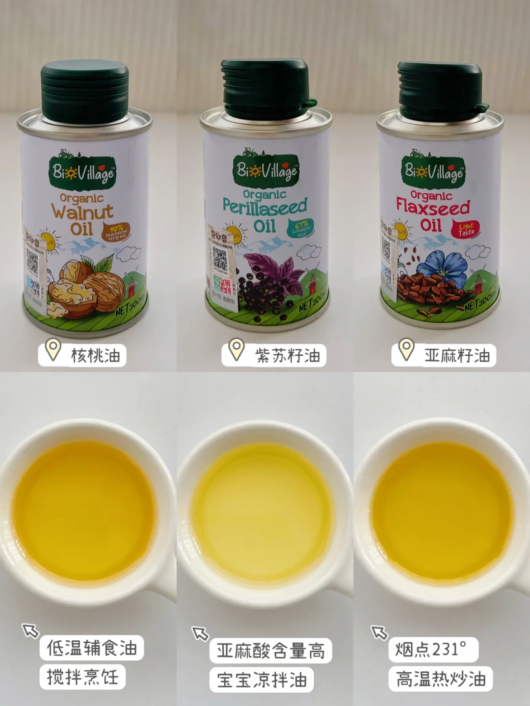 🌈三款油互相互补,满足所有烹饪方式,搭配着吃营养更均衡,每瓶100ml的小容量,短时间内能快速吃完,保证油脂新鲜度,每一口吃到更多营养,3款油轮换吃也毫无压力的,宝妈们可以放心选择哦~
