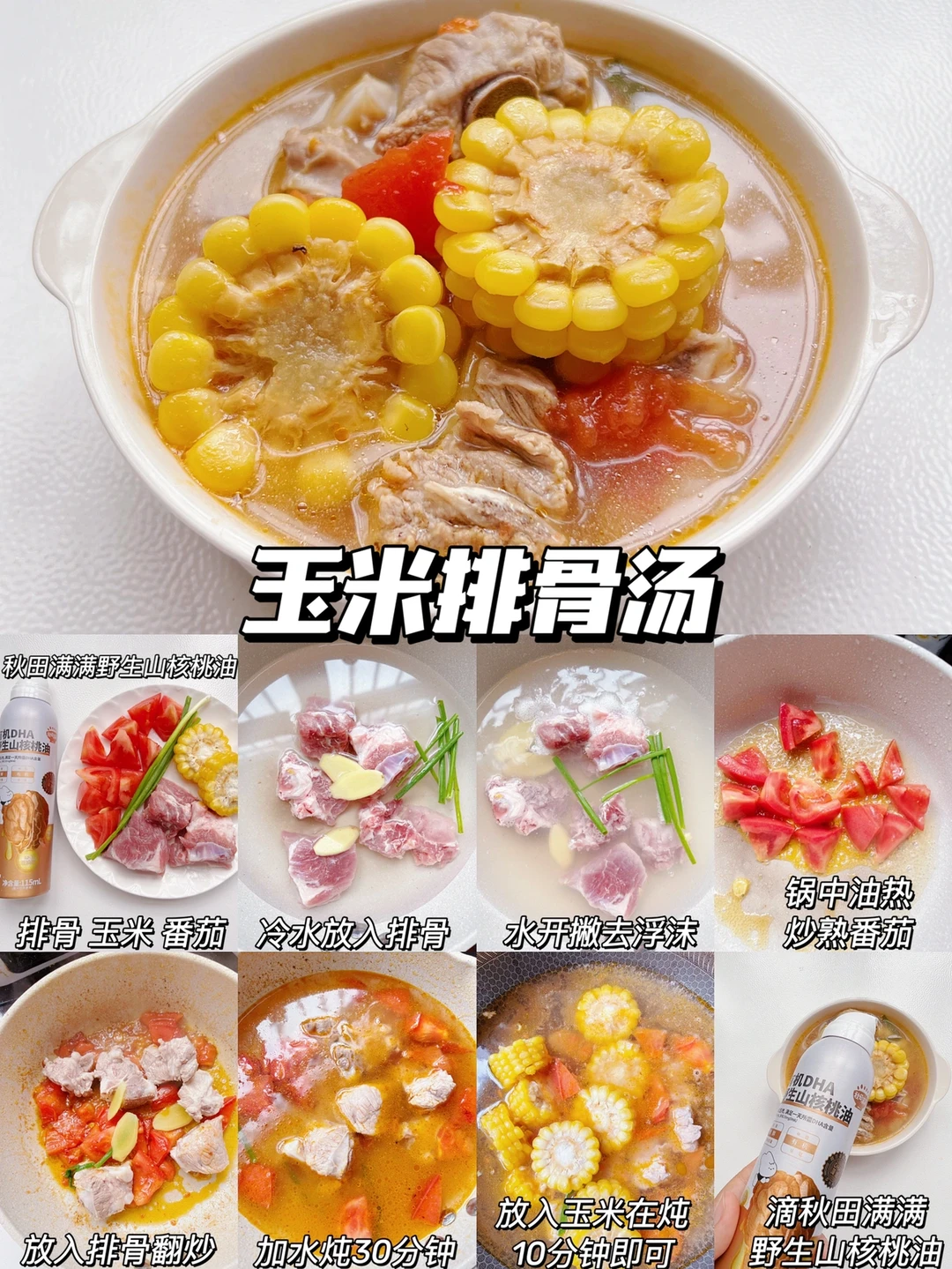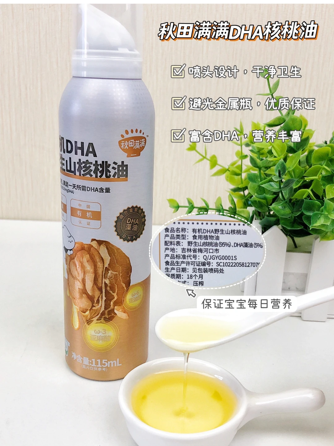 ✅今天做炖汤,我用的是秋田满满DHA核桃油,它选用的是荷兰皇家帝斯曼DHA藻油有机野生山核桃油,每日五喷就能满足宝宝日常所需DHA;喷雾设计,更加卫生;由60天鲜榨油,配料表干净味道清淡不苦涩,宝宝很爱吃,增加了辅食的香味,而且是金属罐包装避光性强,容量小不易浪费~