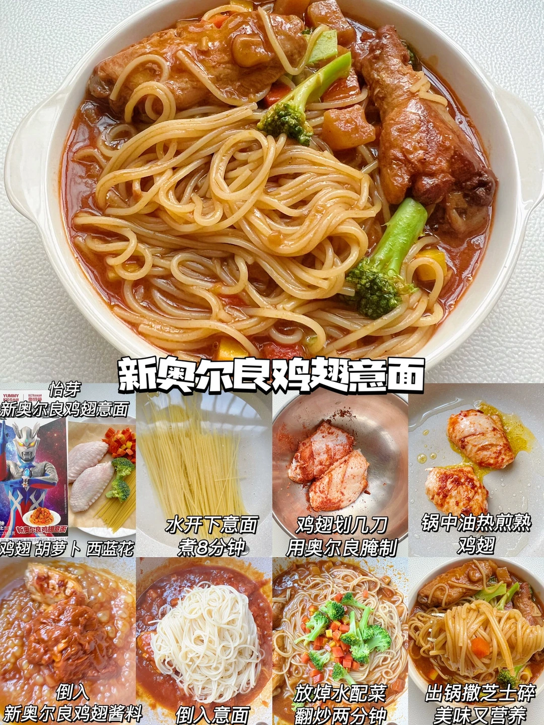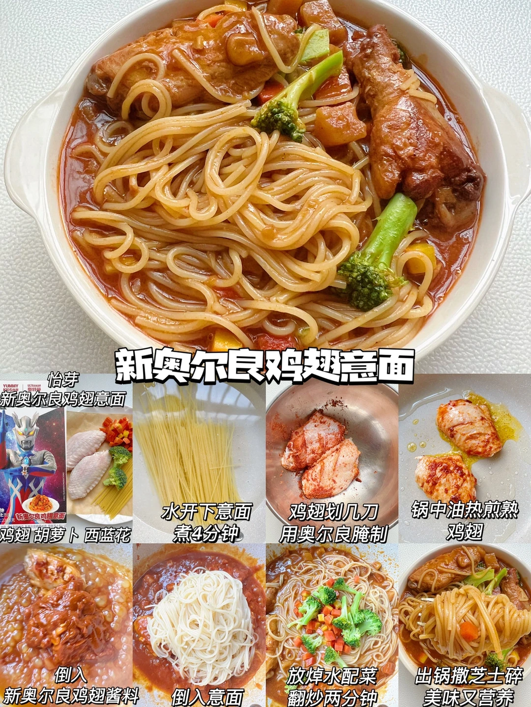 意面水烧开下锅煮4分钟捞出,过一下凉水,不粘锅倒入酱料包。这个系列的意面最吸引我的就是每个酱料包里不仅仅是酱,而是真的有大块的肉肉,像新奥尔良鸡翅这款,竟然真的有两个鸡翅💪,酱料包加热30秒左右,倒入意面,翻版均匀,也可以额外加自己喜欢的蔬菜,出锅加芝士碎,在家就可以吃出西餐厅的感觉👍,真的是太棒了,家里小朋友喜欢吃意面的,可以趁着双十一多囤些~