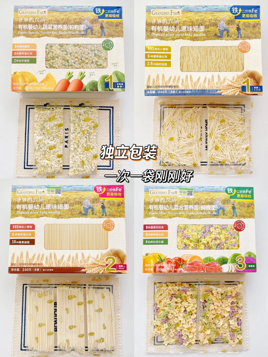 🔸独立包装的:小月龄宝宝吃得少,独立小包装会更方便取量和存储,面条不会容易受潮,也方便携带~